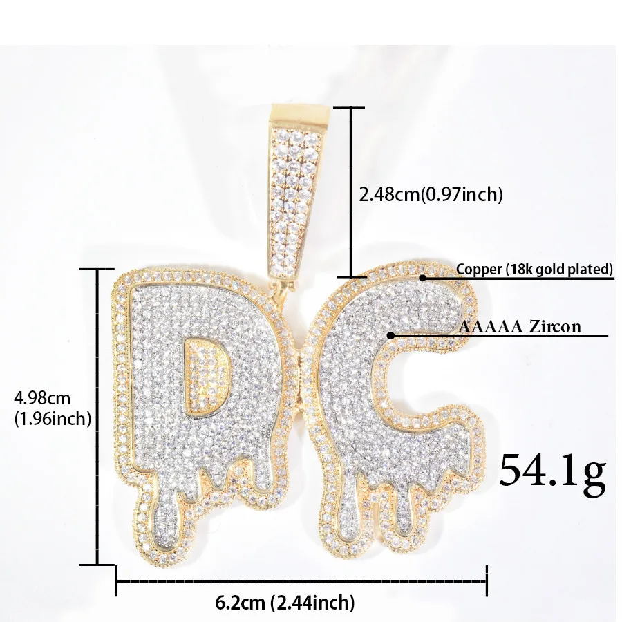 Big Water Droplet Customized 24 Letters Name Pendant Personalized font Necklace 5A Zircon Iced Out Letters Necklaces For Men Wom