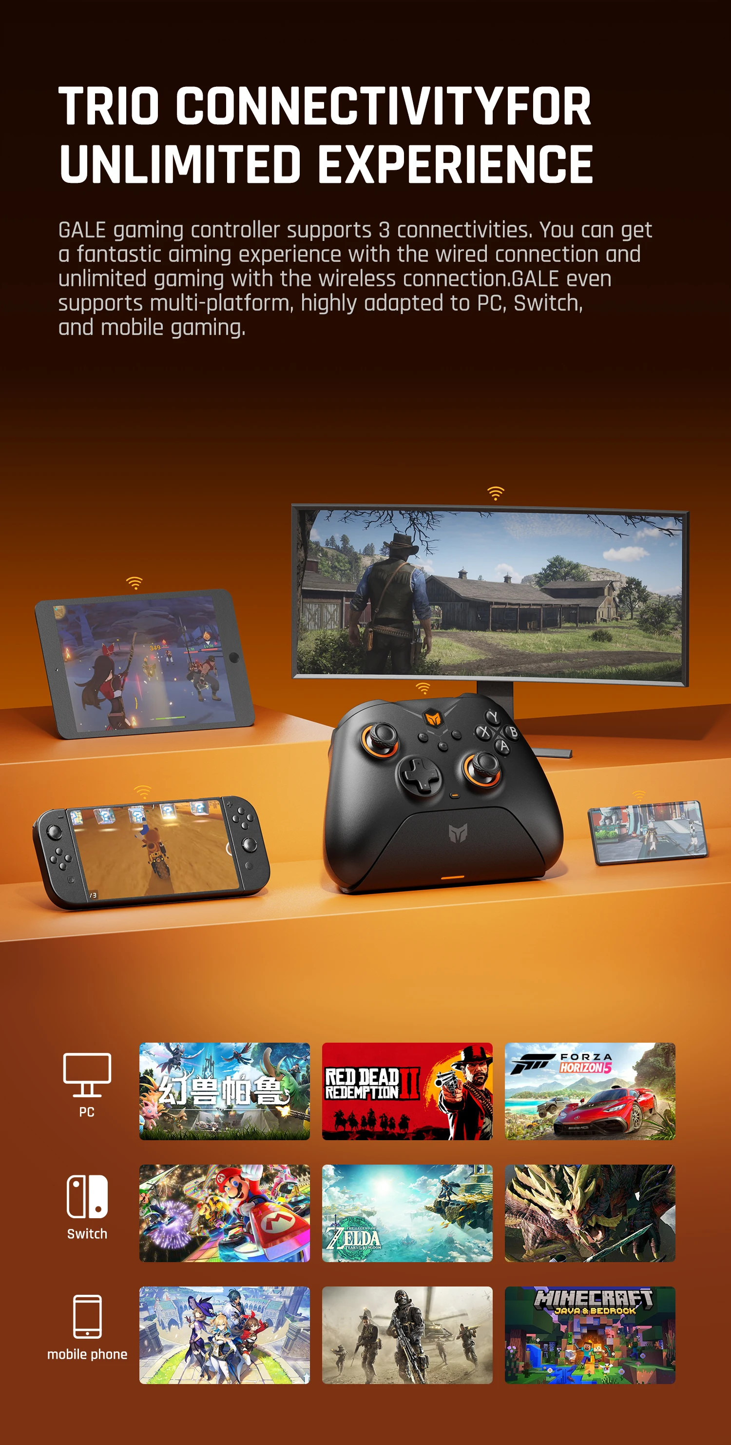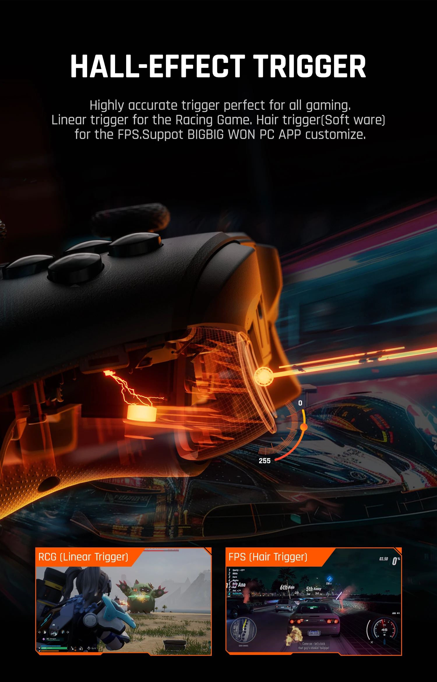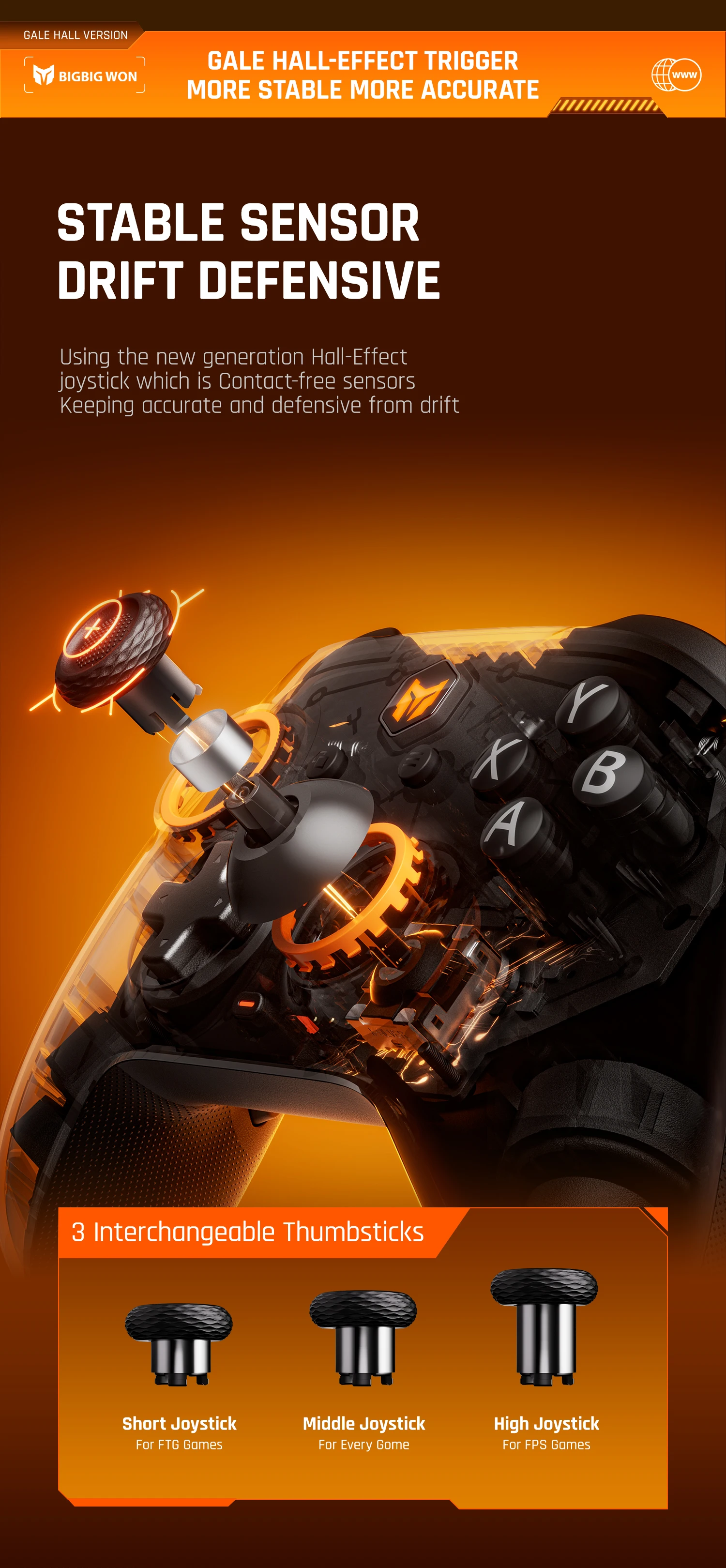 BIGBIG Won Gale - Wireless Bluetooth Gaming Controllers for Switch Gamepad Double Hall Effect Trigger for PC/iOS/Android
