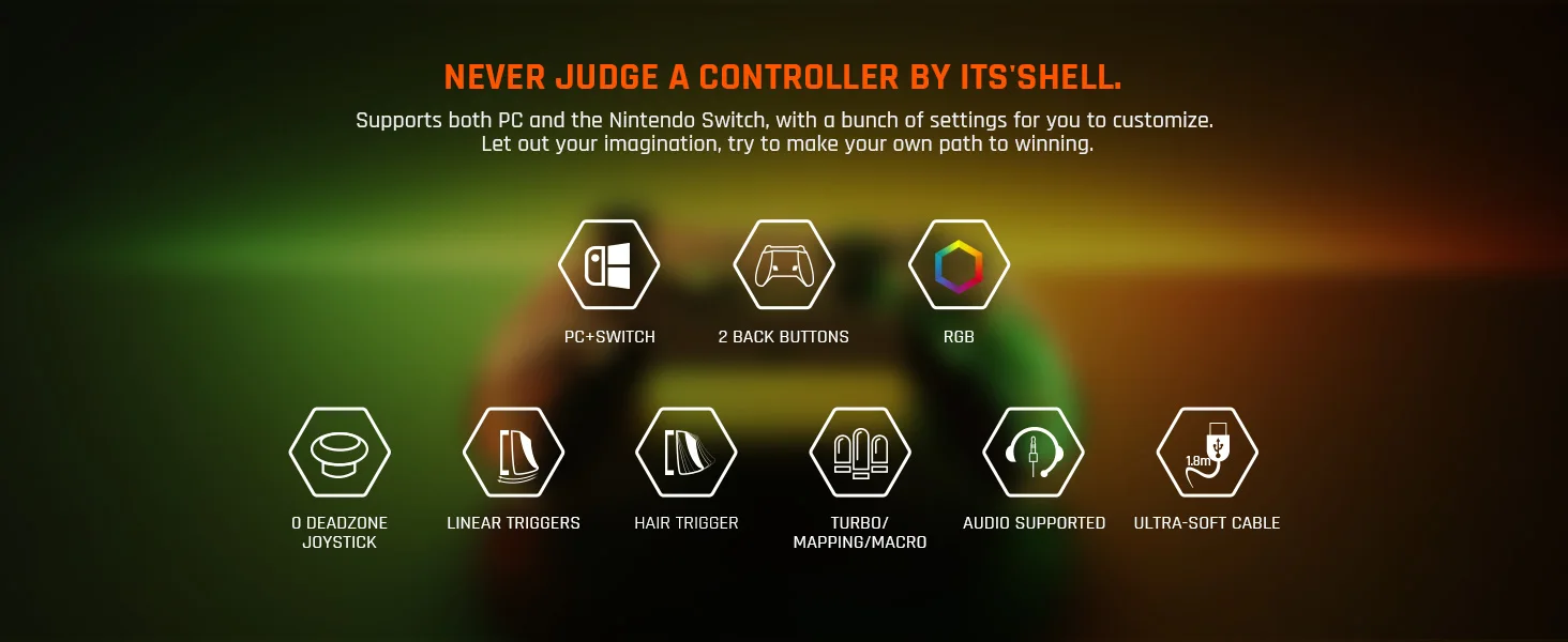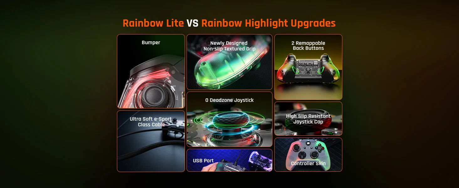 BIGBIG WON RAINBOW LITE /S Wired Game Controller for Switch , Win10/11 With Joystick RGB Light Audio Rainbow Athletic Alteration