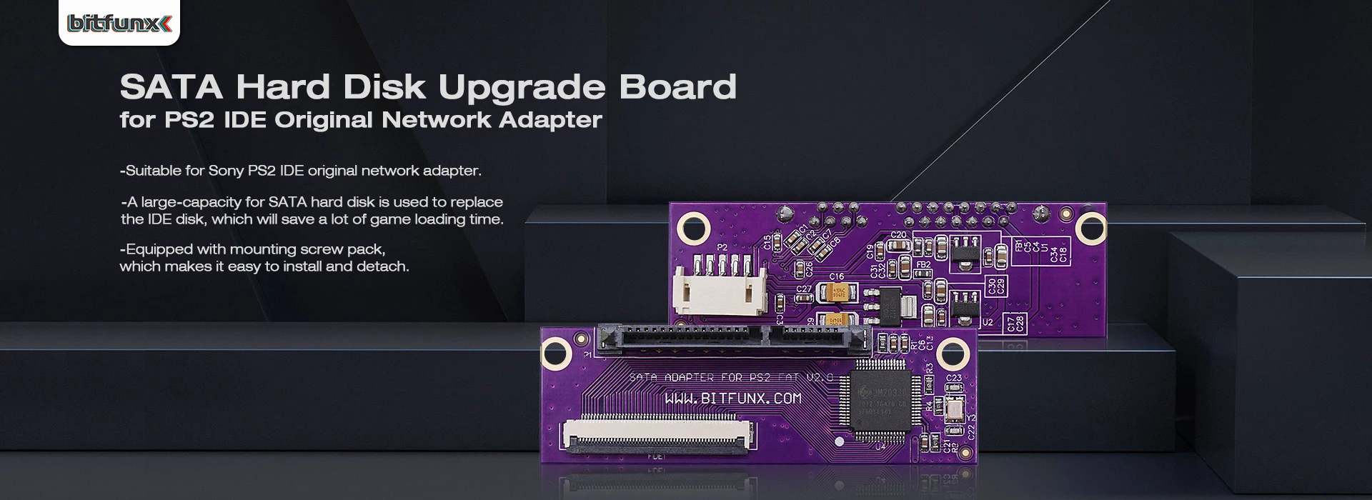 BitFunx GameStar SATA Adapter Compatible 2.5 or 3.5 Inches HDD Hard Drive for Playstation2 PS2 Game Console