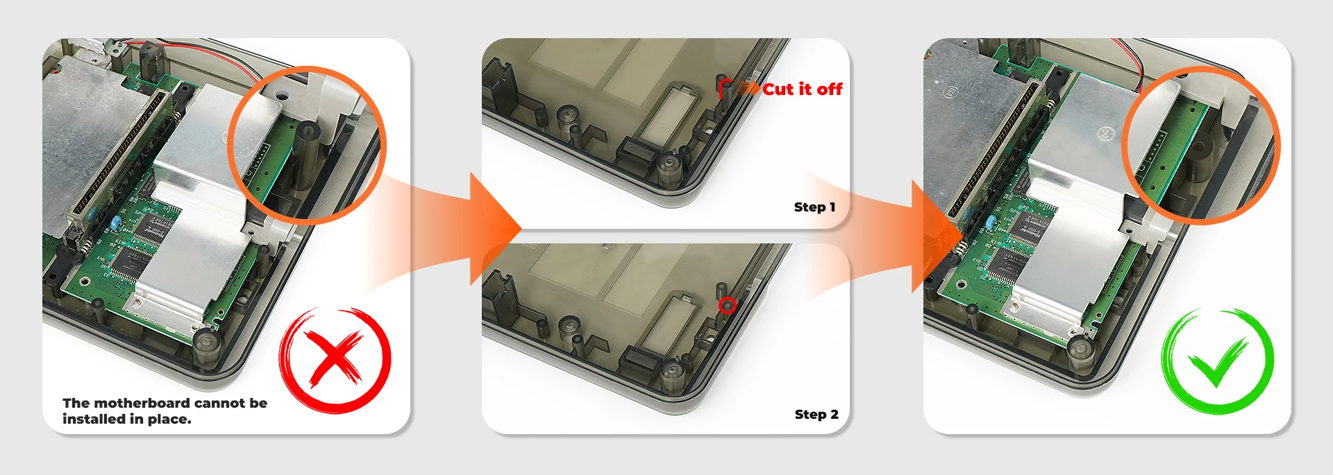 Some motherboards may be obstructed by standoffs, preventing them from being fully assembled. Please remove the standoff as shown in the image