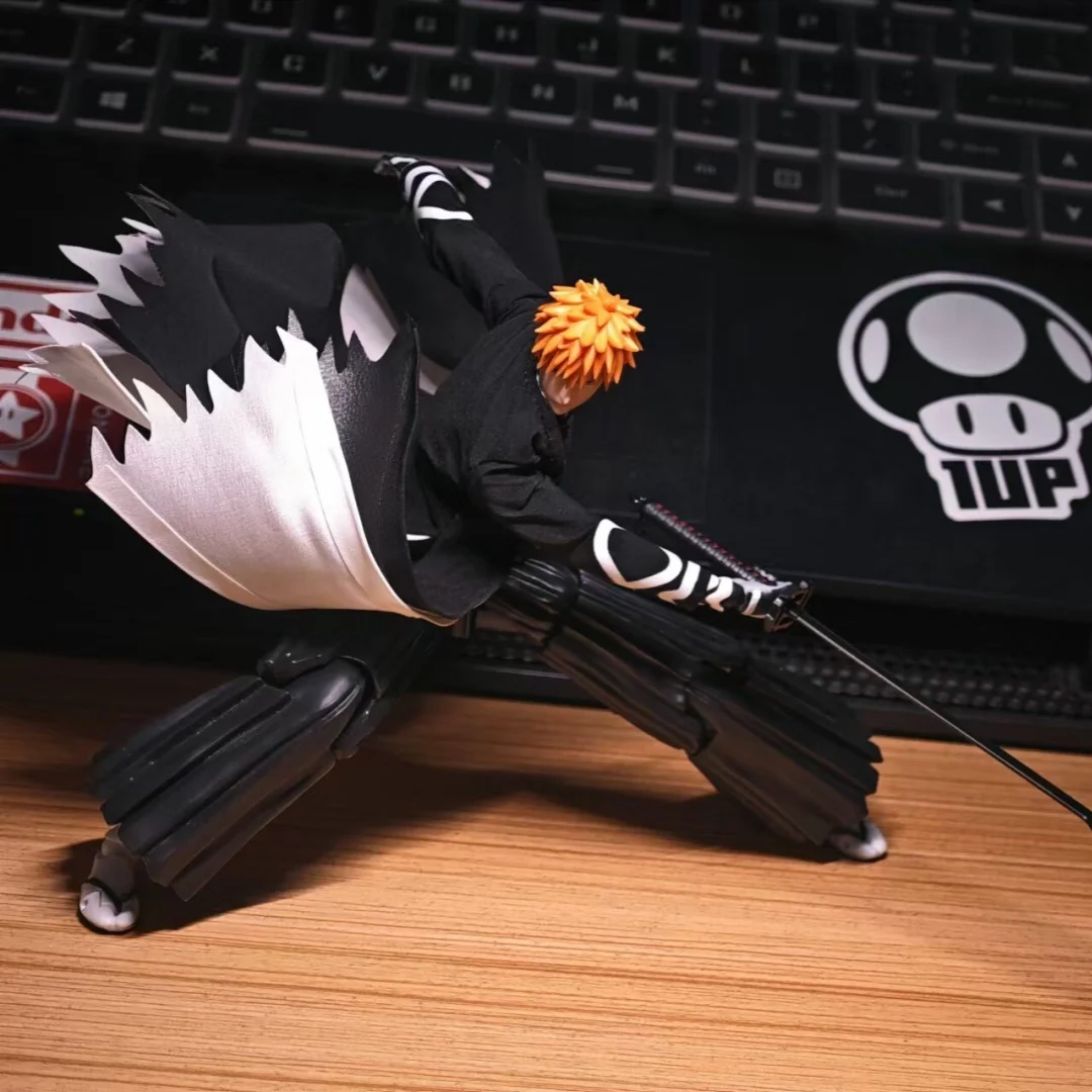 BLEACH Anime Shf Kurosaki Ichigo Handmade Clothes Overcoat Built In Iron Wire for Styling Suitable for 1/12 Movable Humanoid Toy