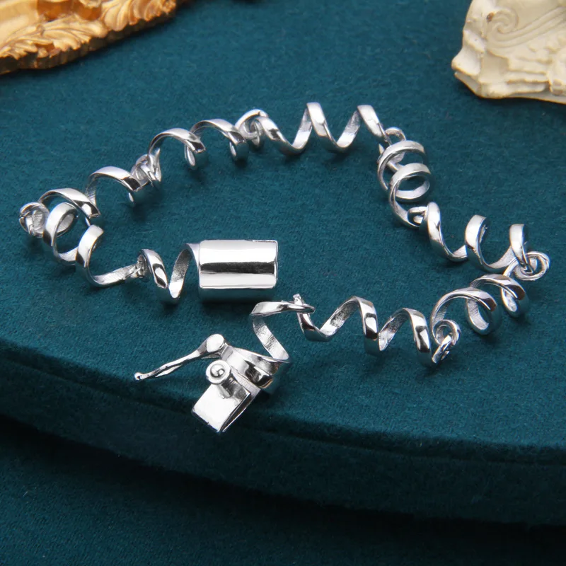 Bracelet Bangle Real 925 Sterling Silver Men Women Smooth Surface Winding Coil Chain Fine Jewelry 2024 Free Delivery Shipping B5