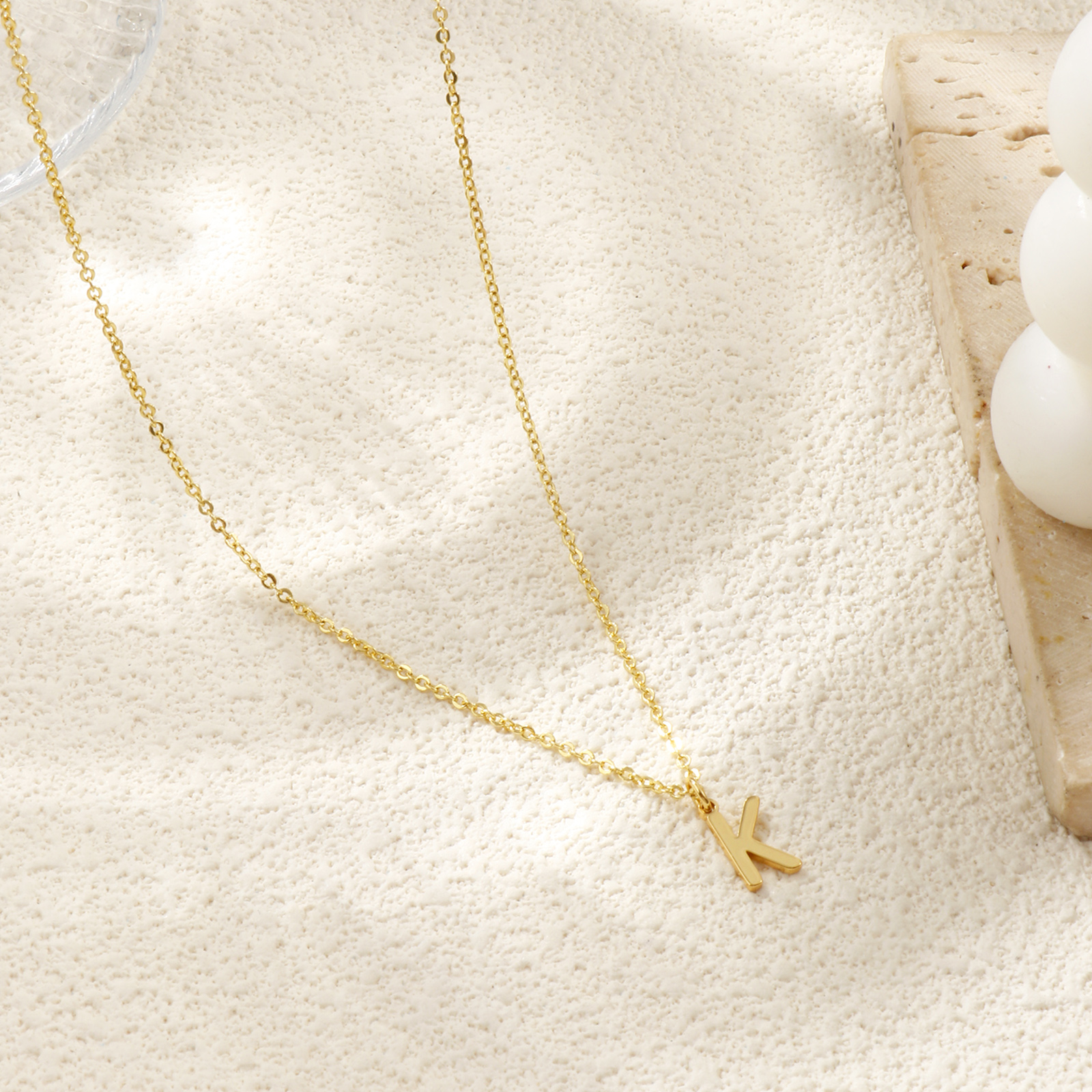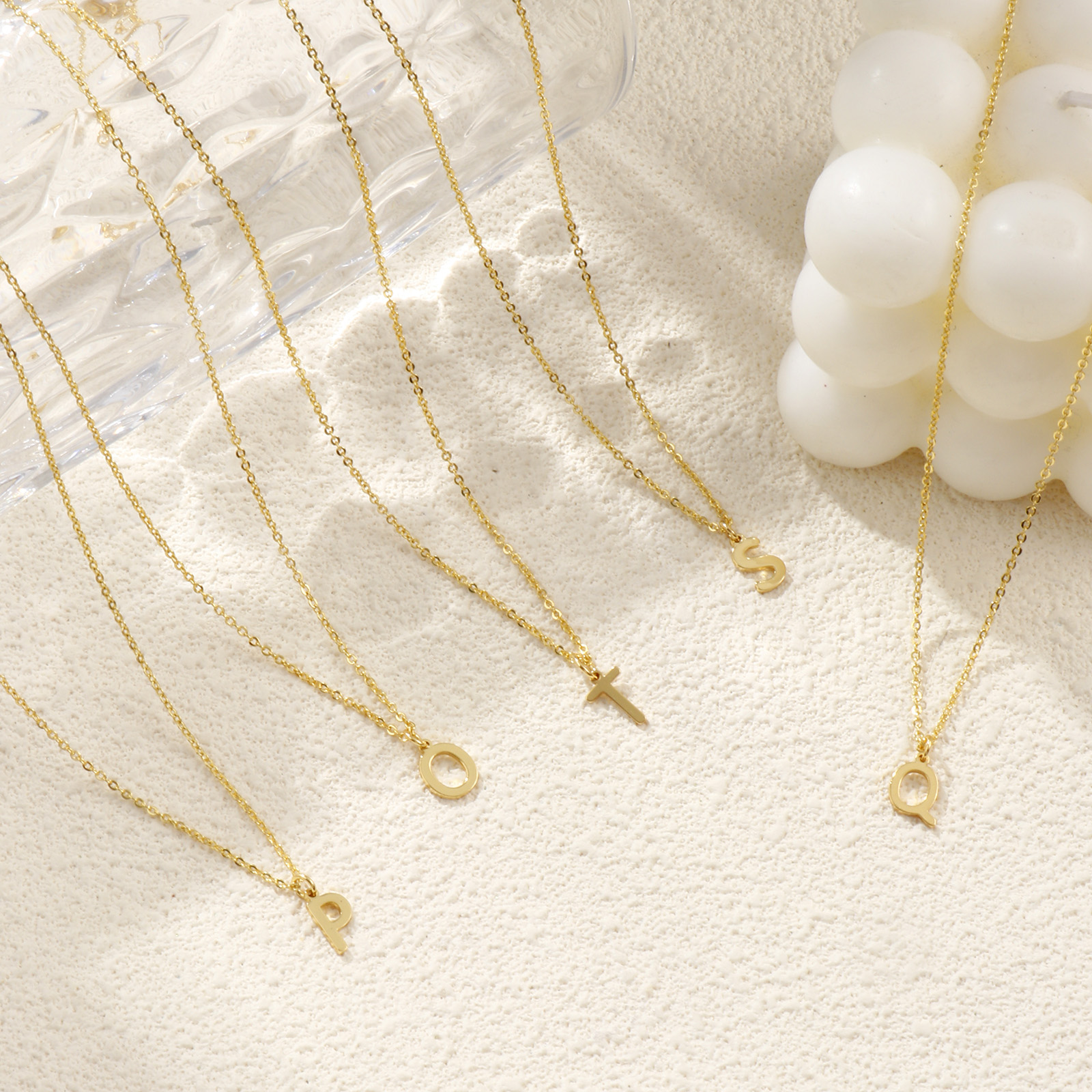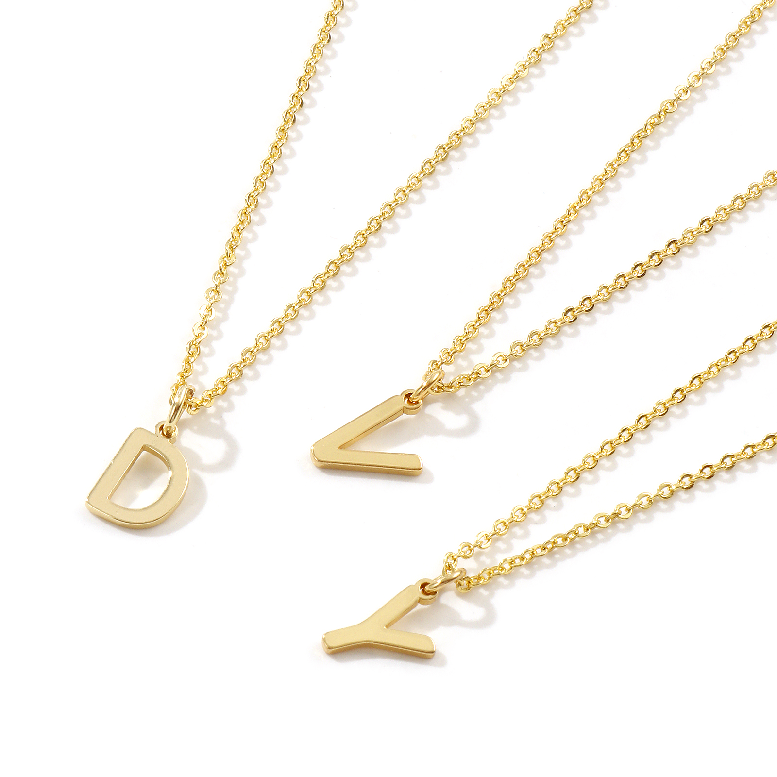 Brass " A-Z " Minimalist Capital Pendant Necklace 18K Real Gold Plated Alphabet Initial Letter Name Jewelry For Women Gift