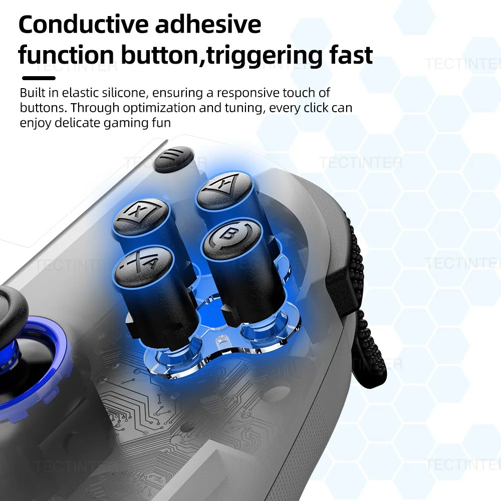Fine-tuned 3D competitive rocker (steel ring + POM ring), feel silky smooth, flexible position; Conductive adhesive function button, trigger fast; Conjoined cross key, control instant conversion, improve the player's game experience.