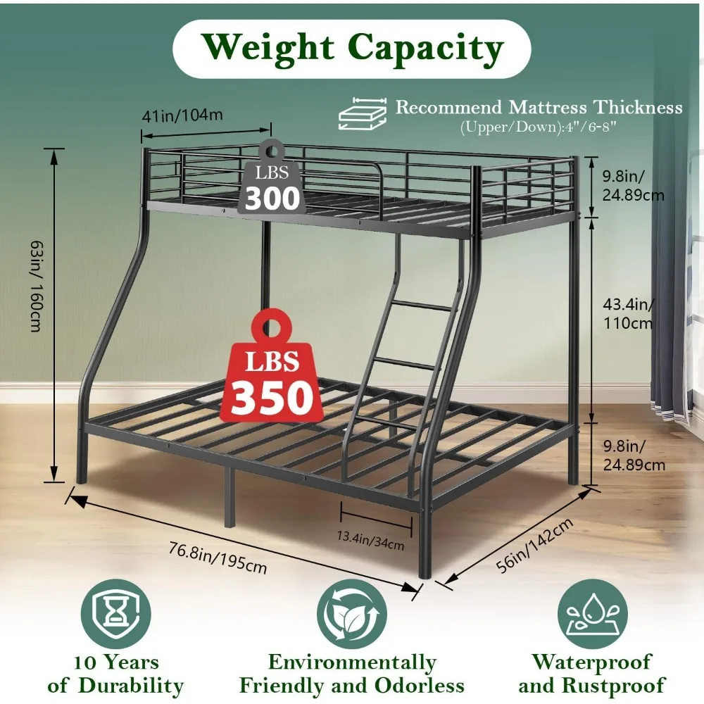 Bunk Beds Twin Over Full Size, Heavy Duty Bunk Beds with Bottom Space & Guardrail Metal Bunk Bed Frame for Aldults Dorm Bedroom