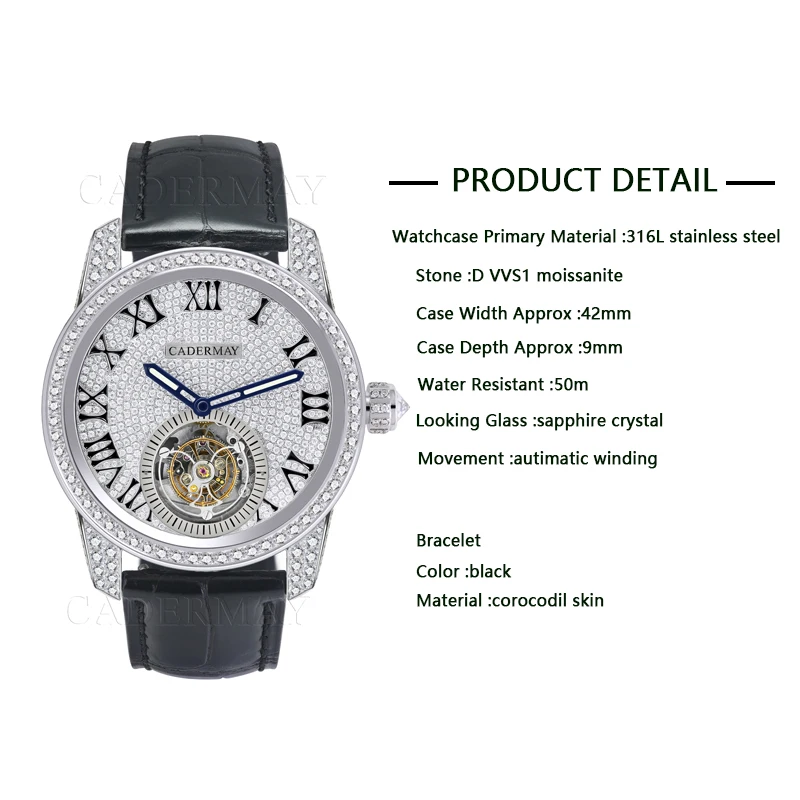 Cadermay D VVS1 Moissanite Stone Luxury 316L Stainless Steel Watch For Women Men High-quality Watches