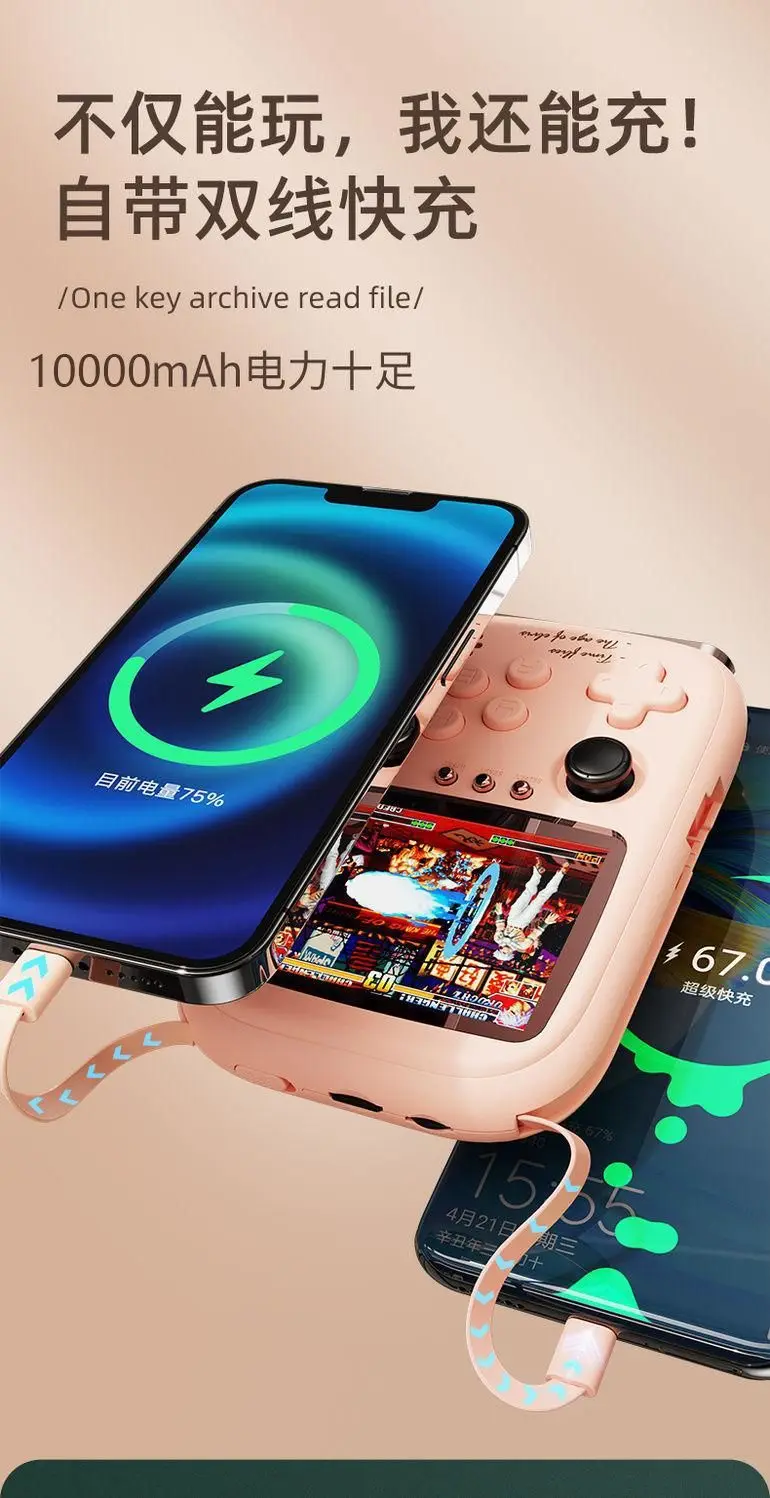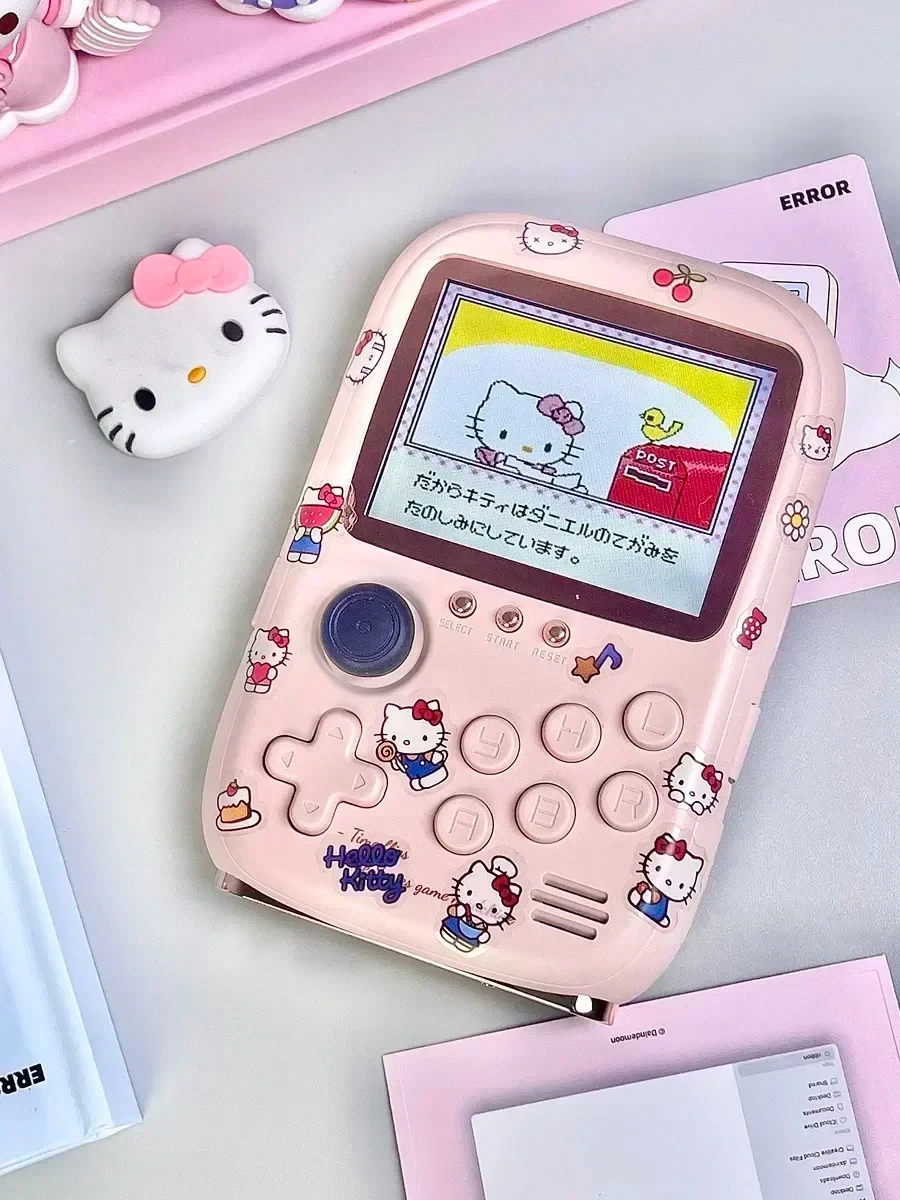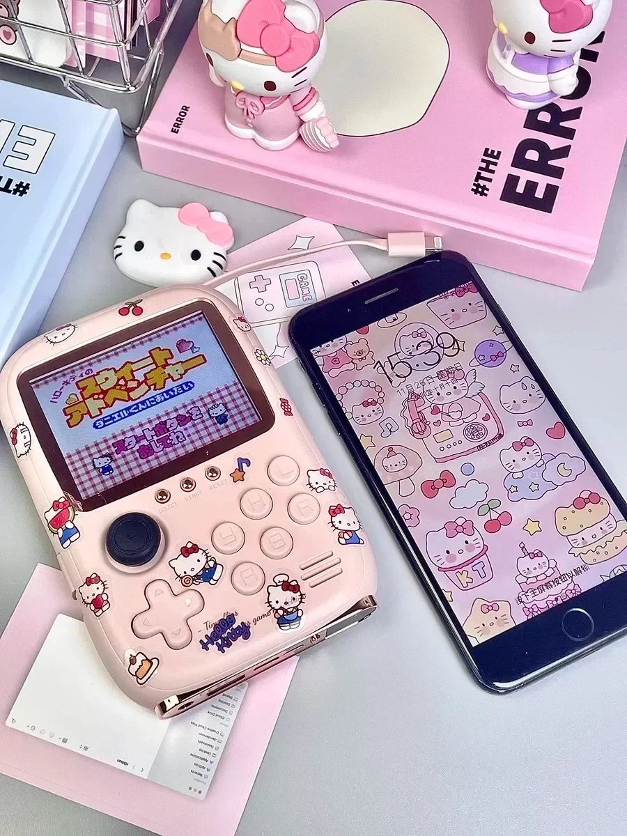 Cartoon Kt Cat Power Bank Mini Portable Retro Handheld Game Console Soft Light Color Screen Toys Friend Birthday Surprise Gift