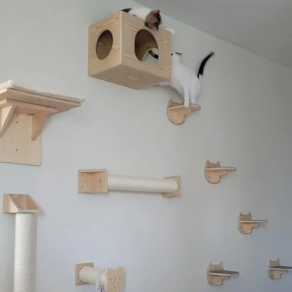 The cat wall shelves caters to cats' habit of climbing, increasing exercise and reducing the chance of obesity, good for health. Besides, it gives cats room to climb and avoid messing up home.