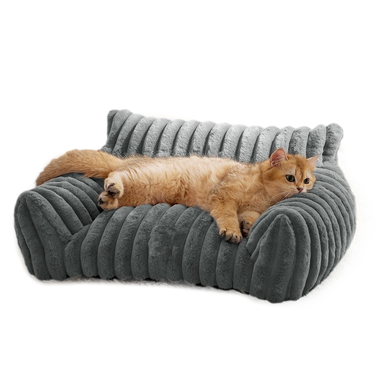 Cat Couch Bed Cute Pet Bed for Small Medium and Large Cats and Dogs Fluffy Sofa Bed for Pets Indoor with Non-Slip Bottom & Washable Cover