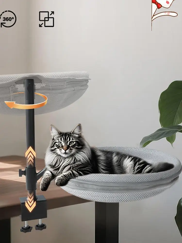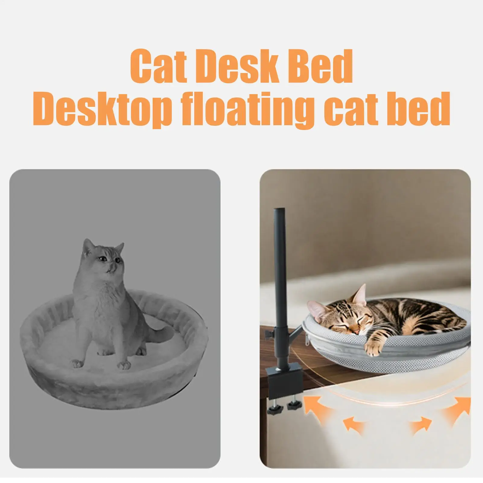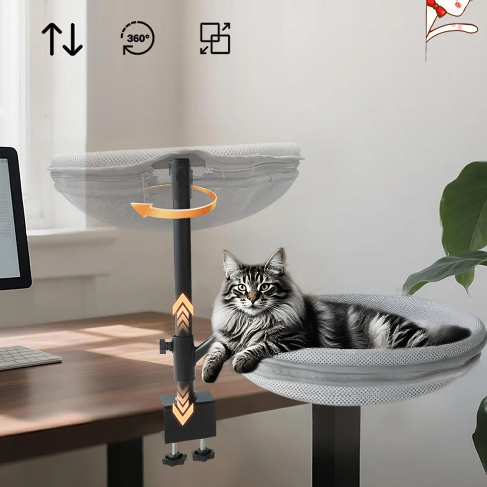 Cat Desk Bed 360 Rotating Pet Hammock Detachable Comfortable Soft Pet Bed Table Mount For Game Table Kitchen Countertop Desk