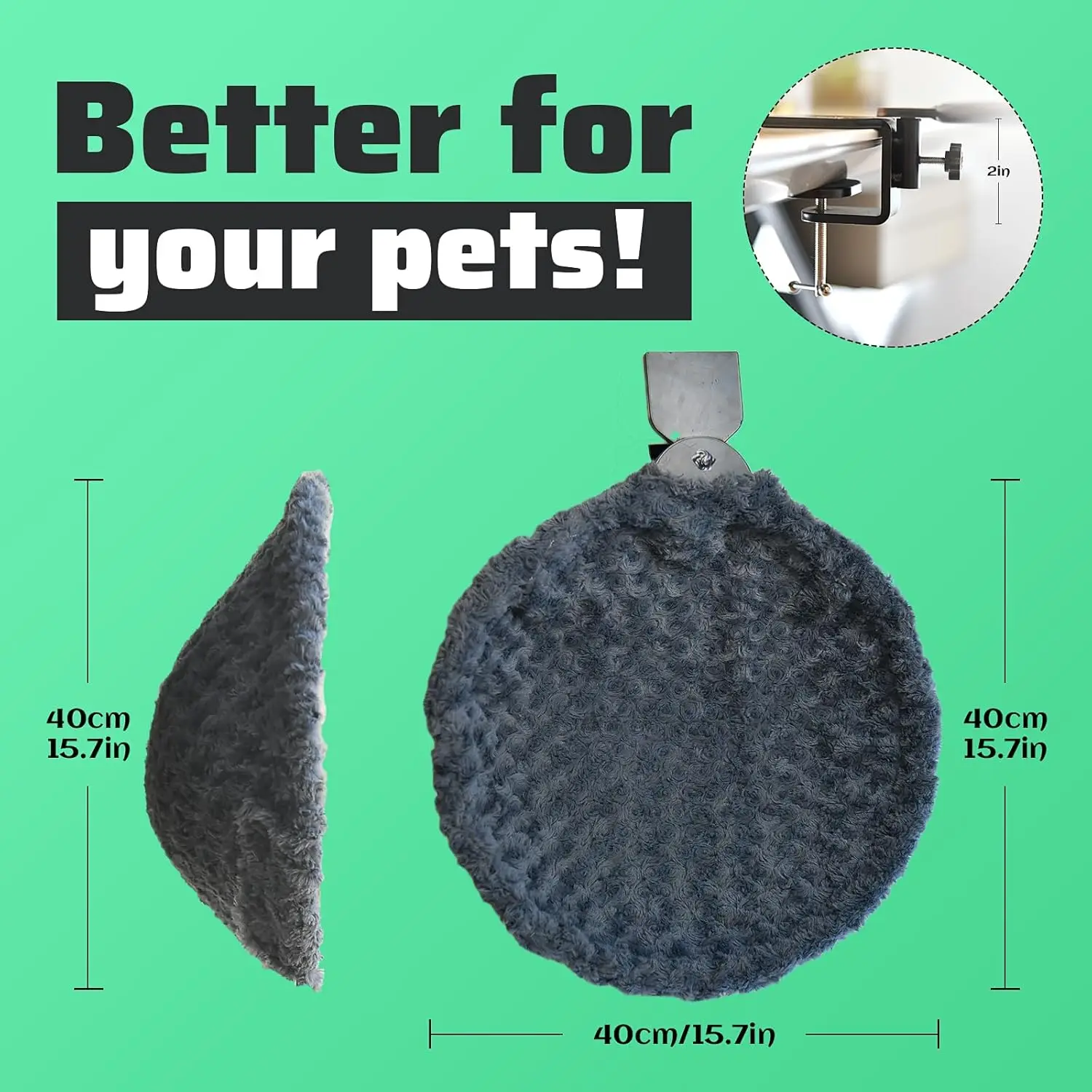 Sturdy construction and large size:Built with a sturdy steel frame and secure G-clip to provide stability, this bed is designed to safely support your cat even if cats jump in,while attached to desks or tables, holding up to 50lbs. Diameter: 15'',Depth: 5'',providing ample space for your cats to stretch, play, and enjoy the view.