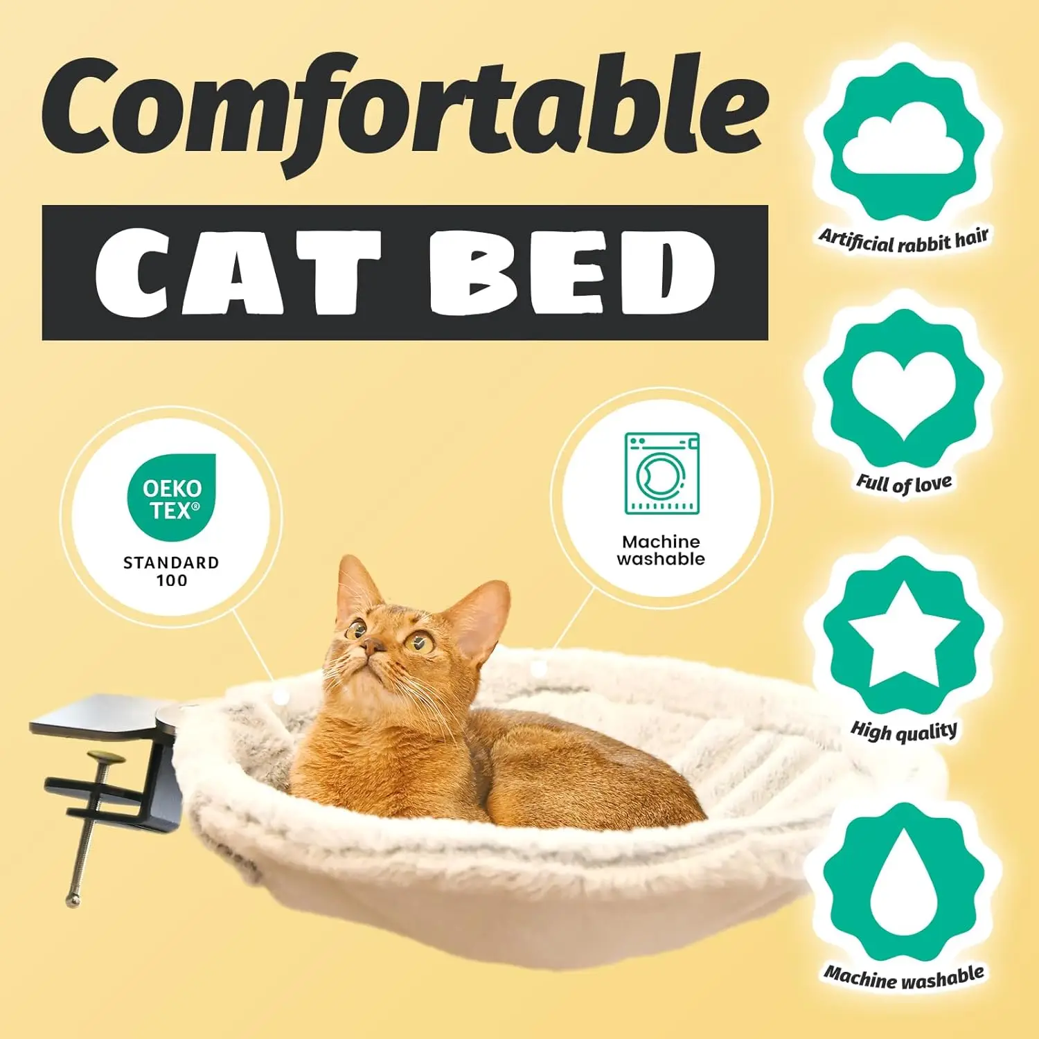 Exquisite Design: Perfectly attaches to your desk or table, providing a cozy perch for your cat while saving valuable floor space in your home or office,effectively prevent being influenced by cats when working or resting,and you can touch your pet at any time.