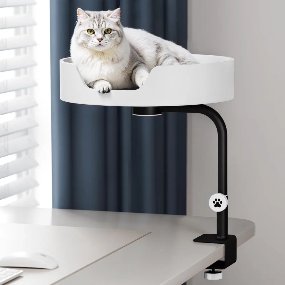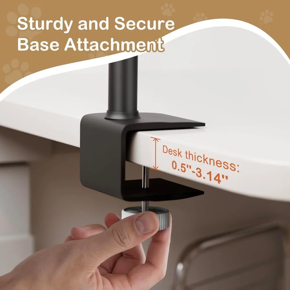 - Sturdy & Safety: Crafted with a durable aluminum alloy support rod, this design can support up to 30 lbs, ensuring stability and security for your cat. The base clamp features a secure locking mechanism that provides a firm grip on your desk