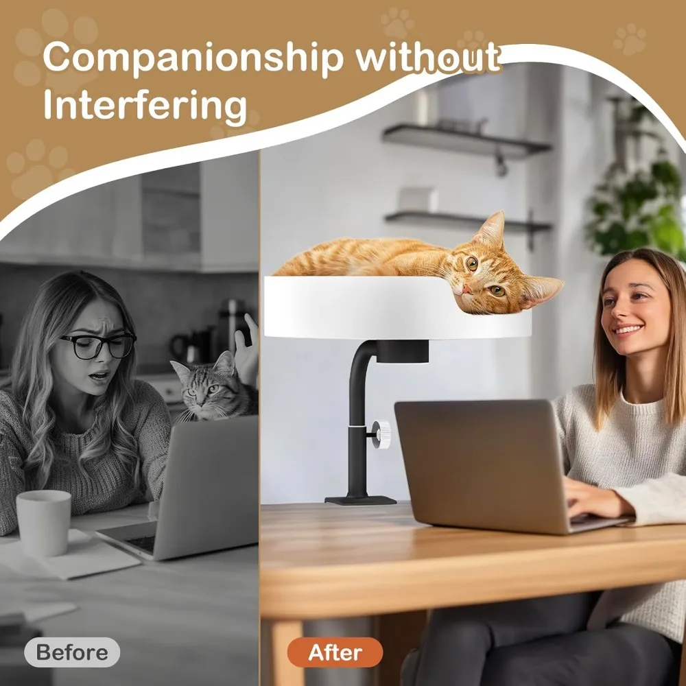 - Adjustable & Space Saving: The cat bed for desk rotates 360Β° and has an adjustable height, allowing you to position it for the best view for your cat. With its compact 3.93'' length and 2.16'' width base, it saves space, keeping your workspace tidy