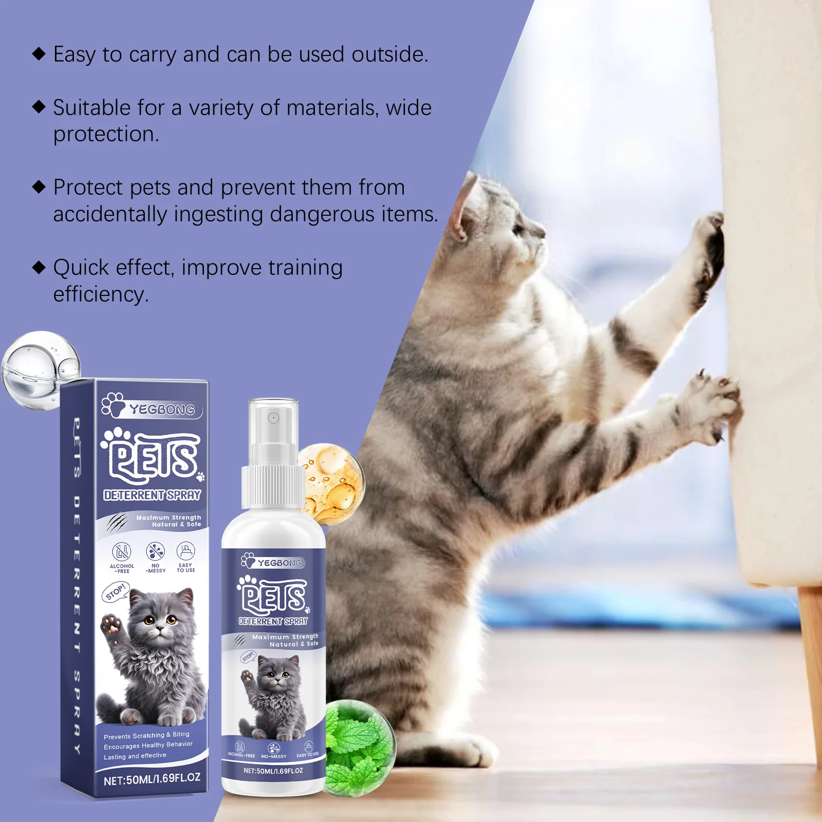 Cat Dog Scratch Deterrent Spray Protects Furniture Carpet Drapes Gentle Anti Scratch Training Aid Mild Anti Pet Scratch Spray