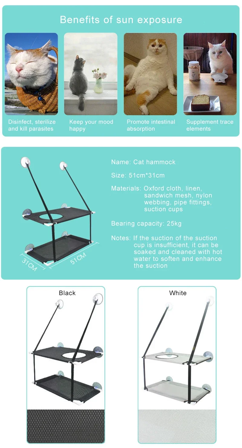 Cat Hammock Suction Cup Windowsill Cat Comfortable Hammocks Summer Breathable Mesh Single/Double Hanging Beds Pet Accessories