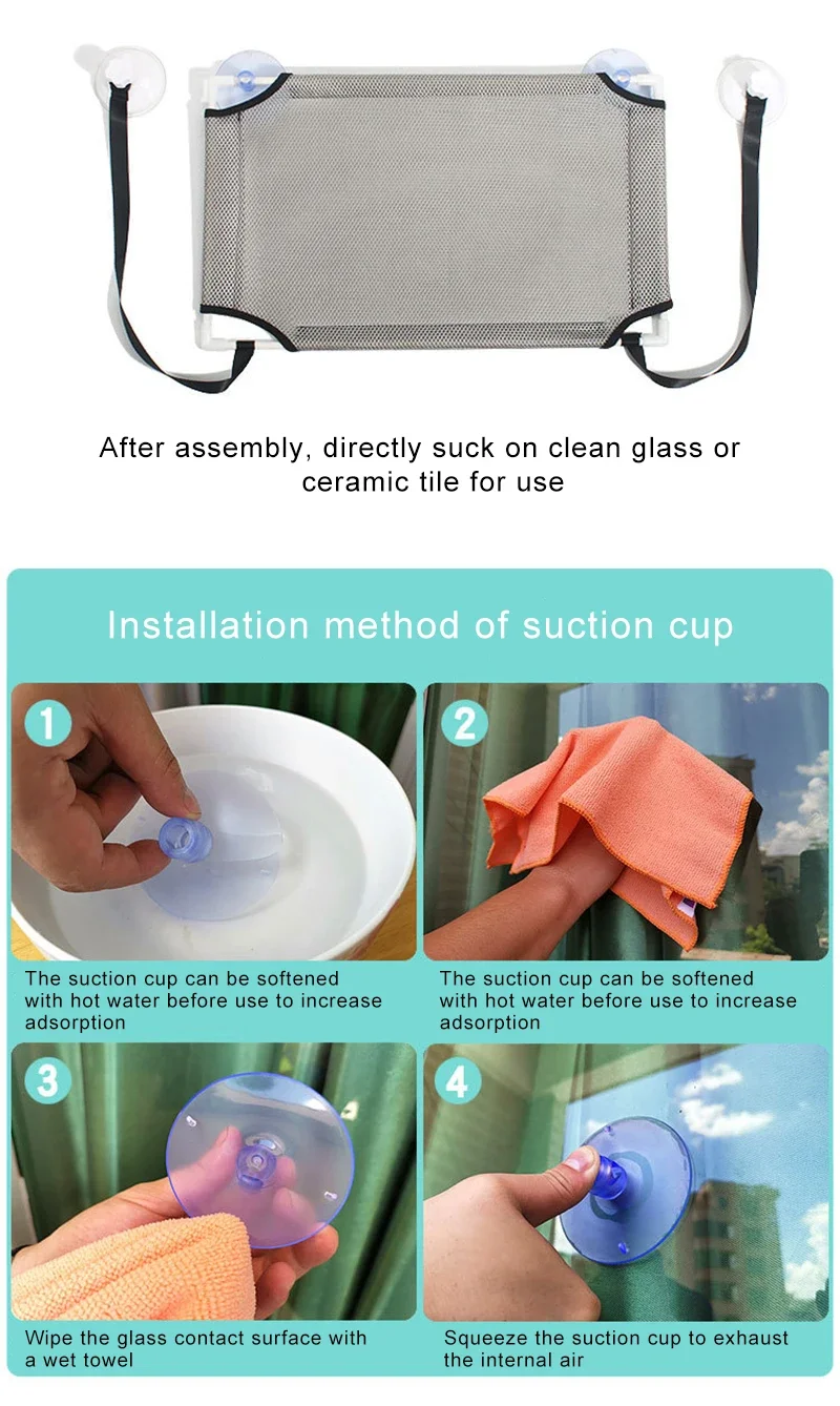 9.Easy to assemble: no tools or adhesives are required for easy assembly and firmly adheres to slippery surfaces. It can be used not only on windows, but also in many places
