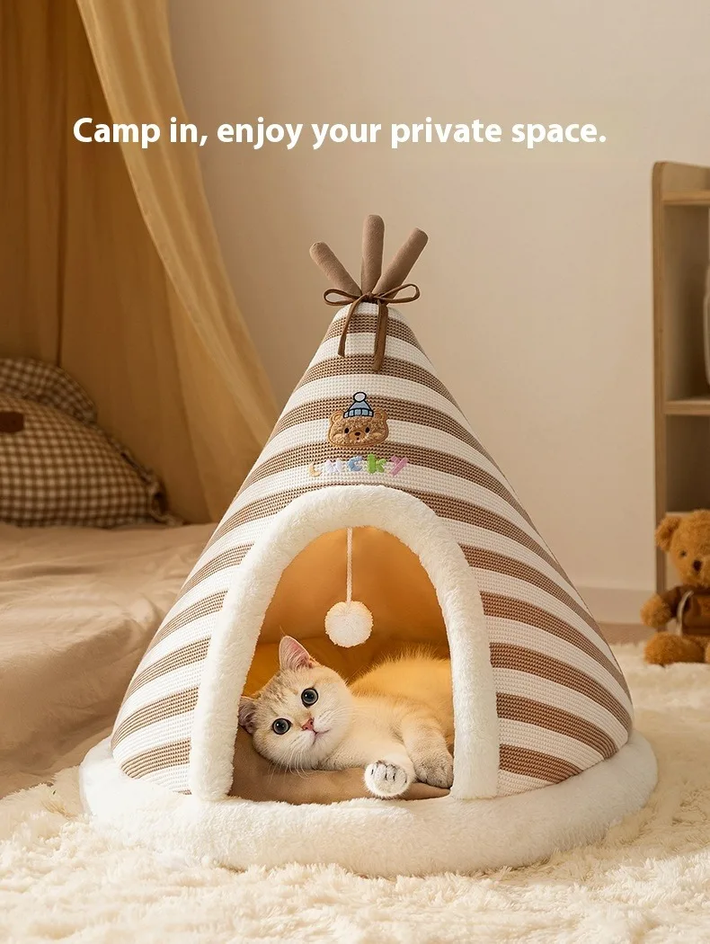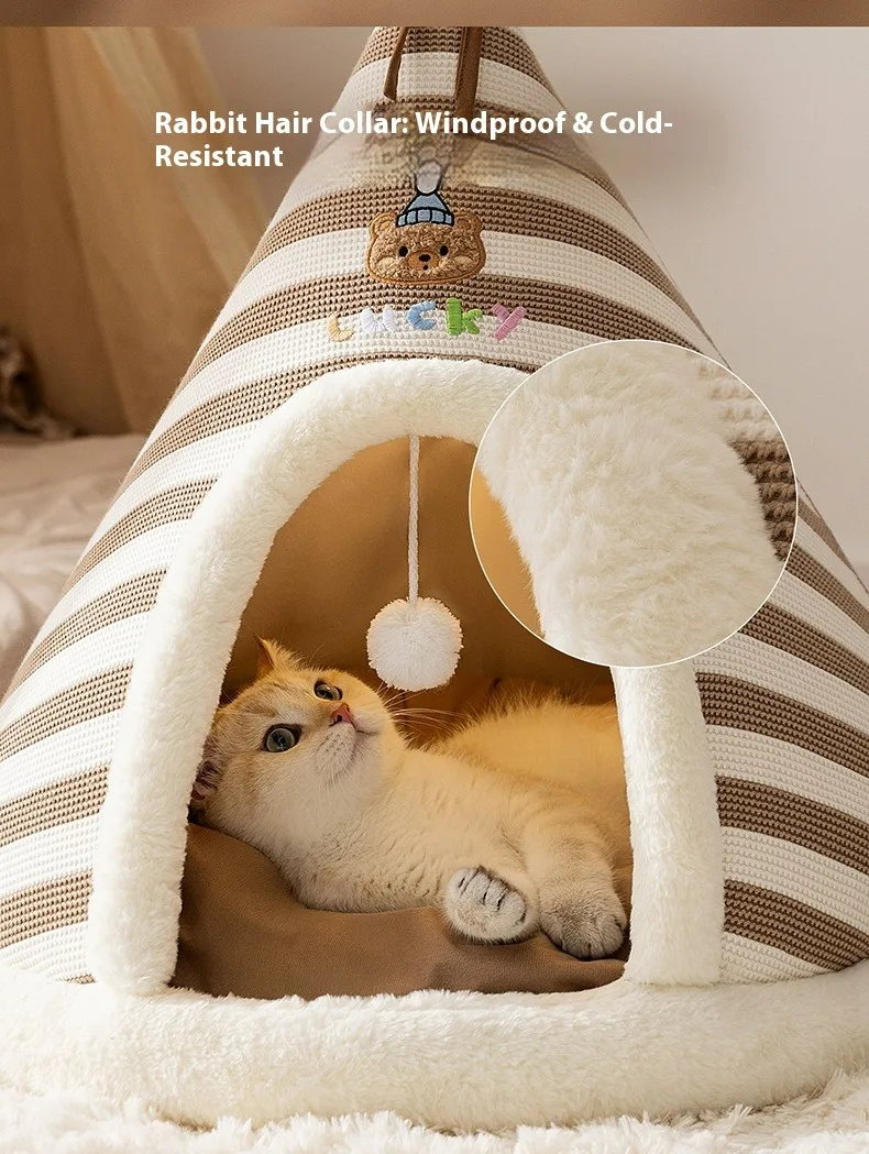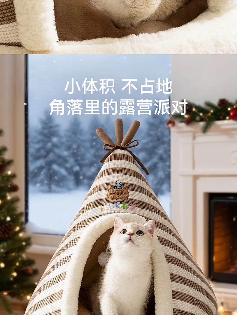 Cat Nest Autumn Winter Round Knitted Tent Nest Thickened Warm Mongolian Yurt Christmas Cat House Dog Bed Pet Supplies Puppy
