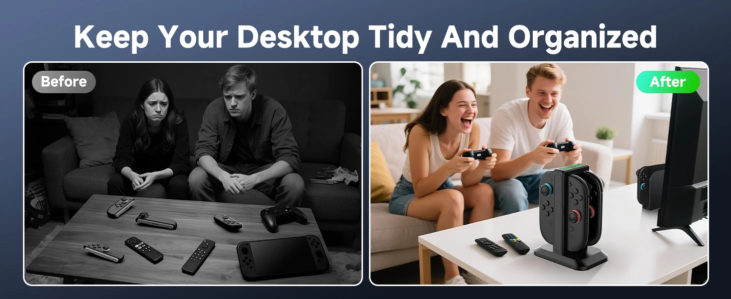 controller is properly seated in the device and is charging.γStorage and Save SpaceγWhen charging is not required, It is safe to put for switch Joy-Con on the stand, Not only is it easy to access at any time, but it also saves space on your desktop.