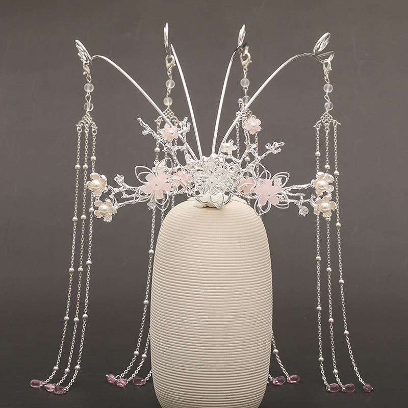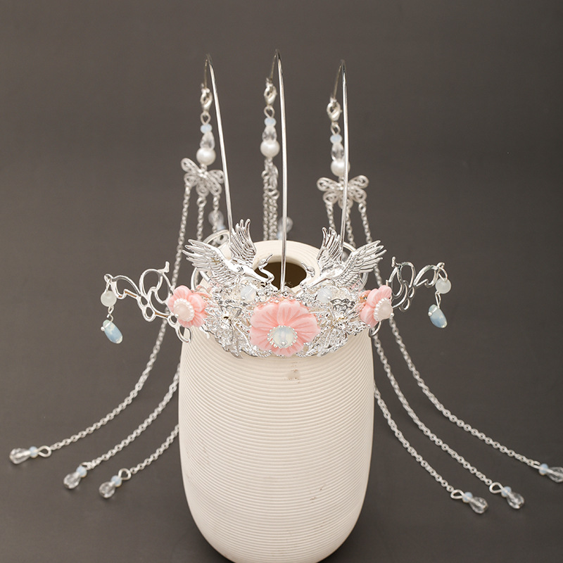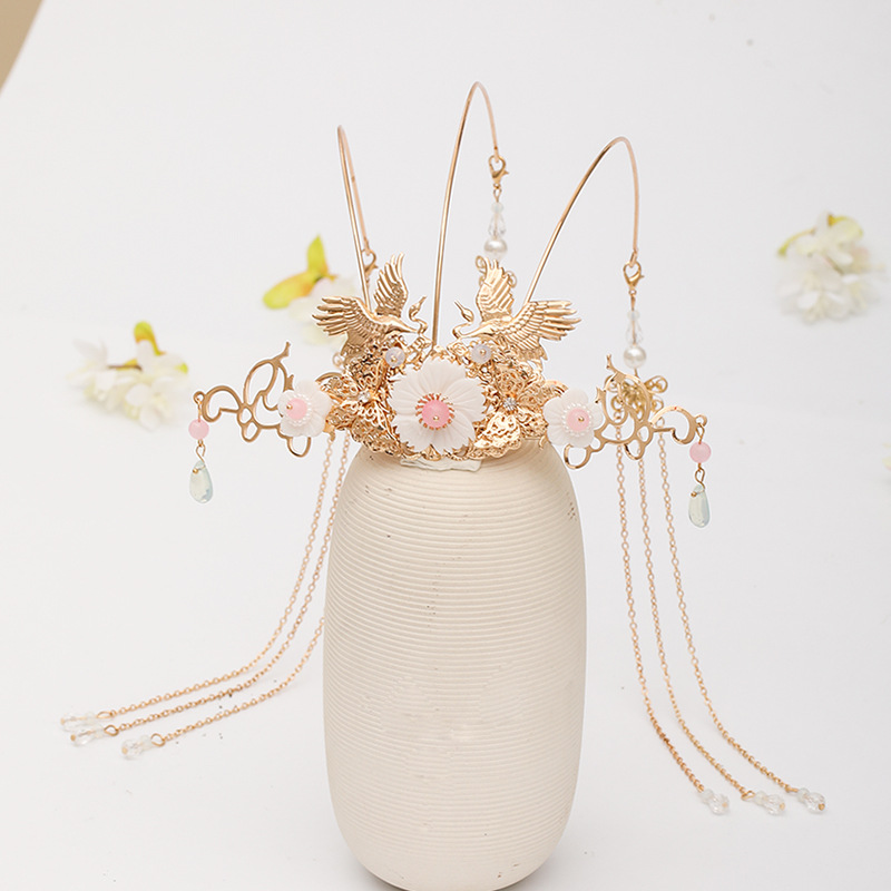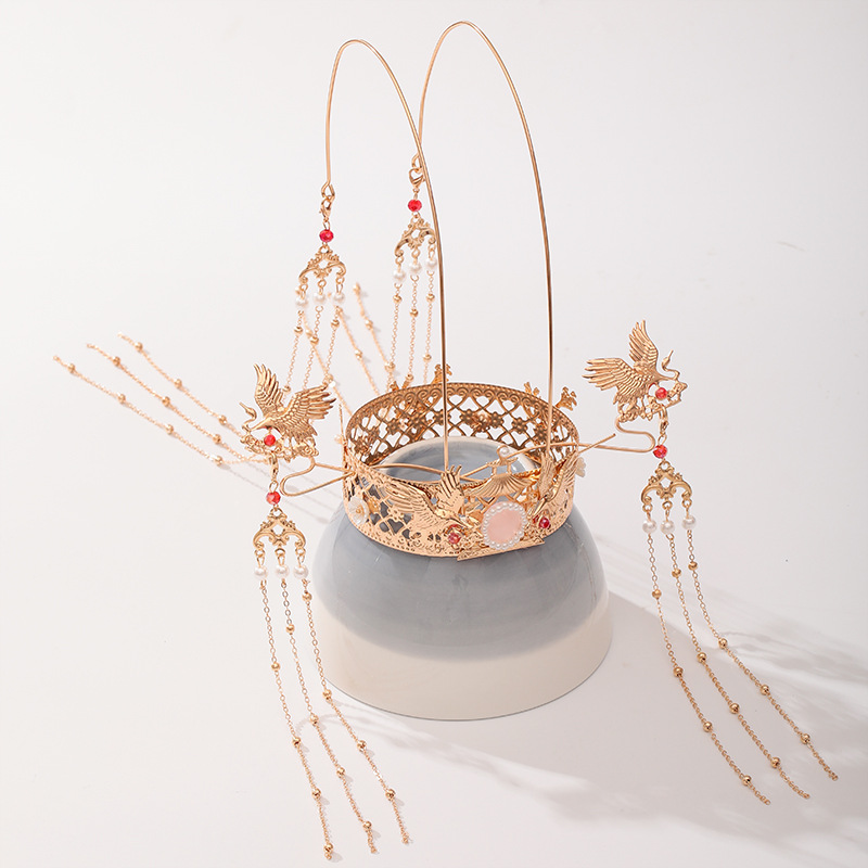 Chinese dress crown headdress auspicious wishful style flower phoenix design tassel TEN