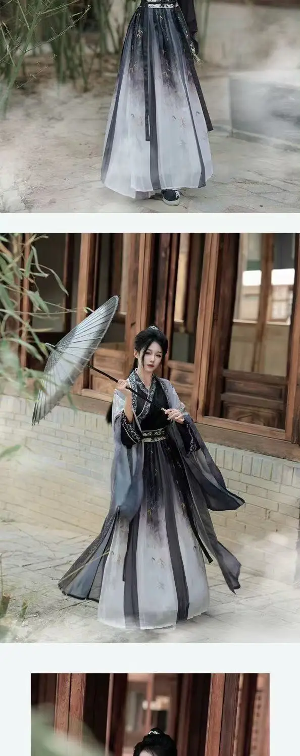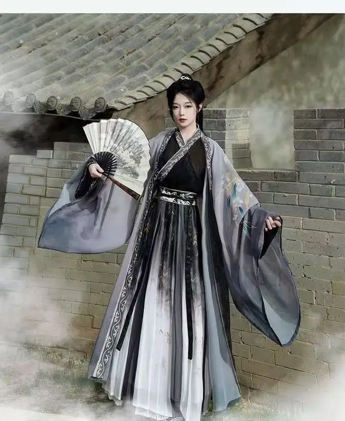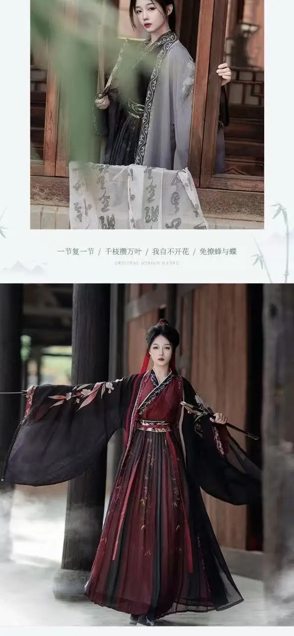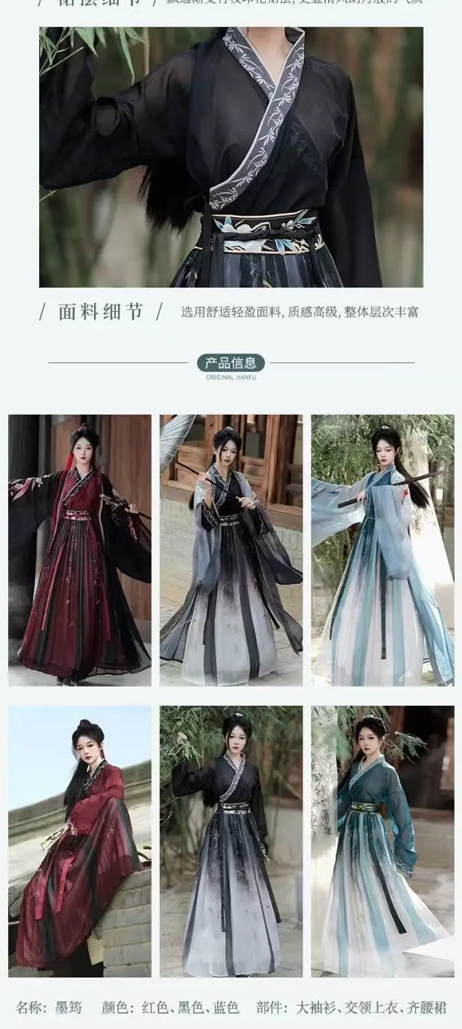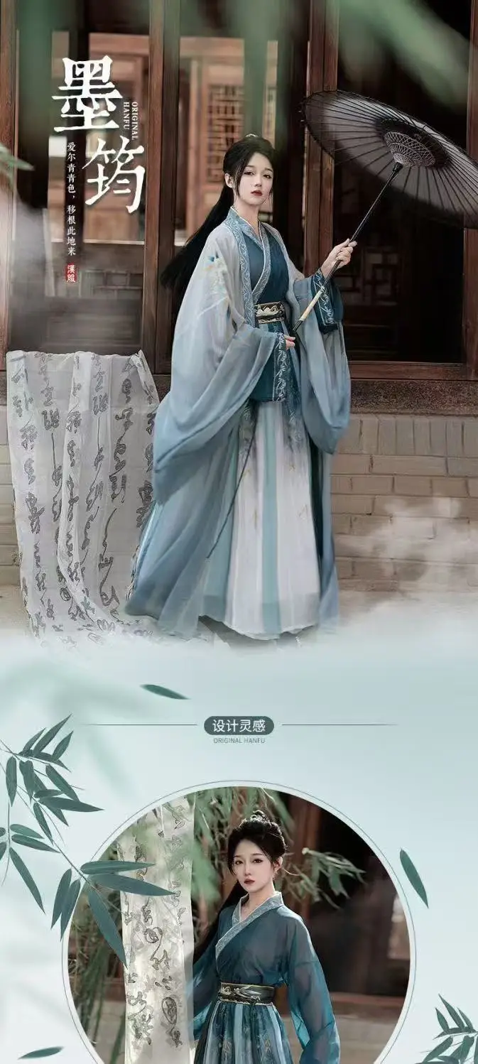 Traditiona Chinese Water Ink Painting Bamboo Elements Printing Hanfu for Men Women Halloween Cosplay Photography Wear