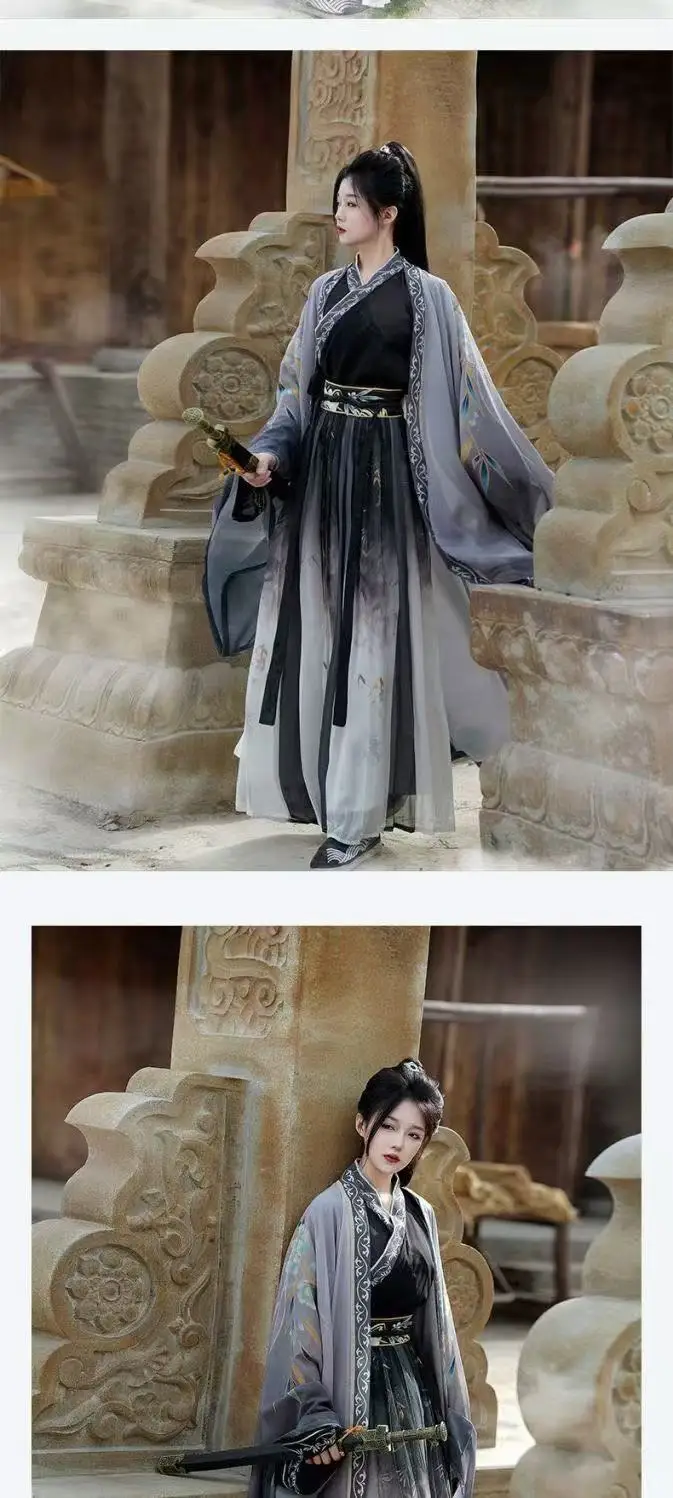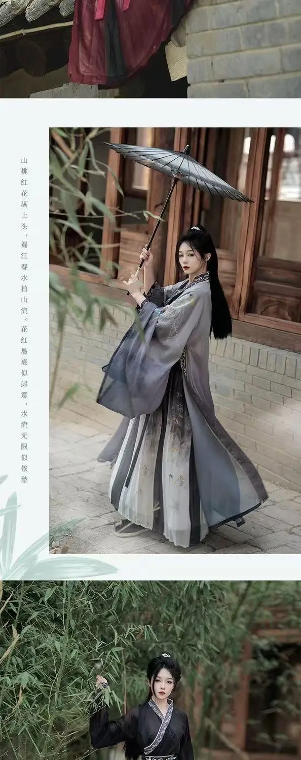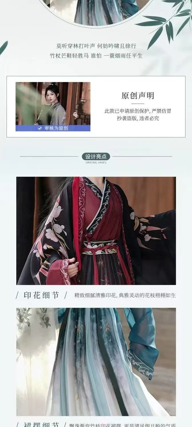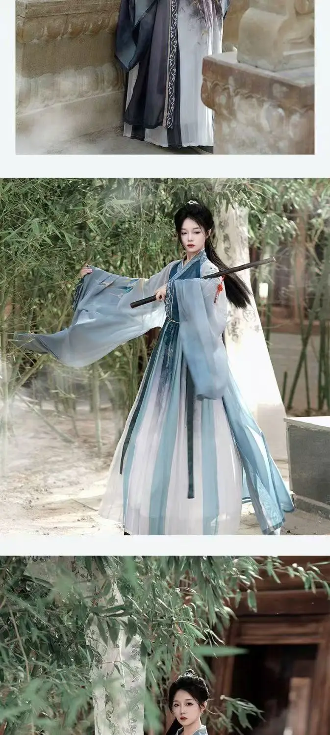 Traditiona Chinese Water Ink Painting Bamboo Elements Printing Hanfu for Men Women Halloween Cosplay Photography Wear