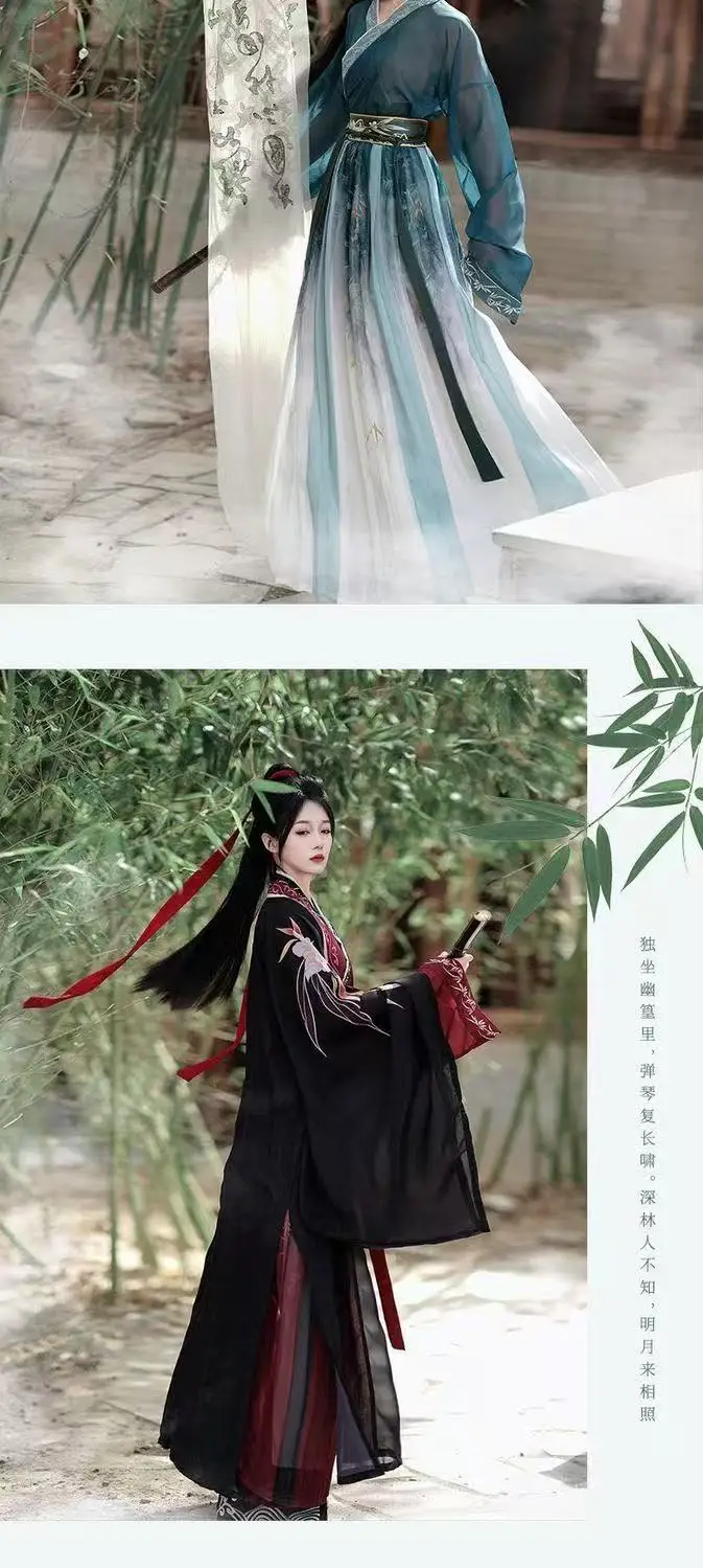 Chinese Song Dynasty Hanfu Men Women Traditional Bamboo Elements Printing Costume Stylish Halloween Wuxia Swordsman Cosplay Suit