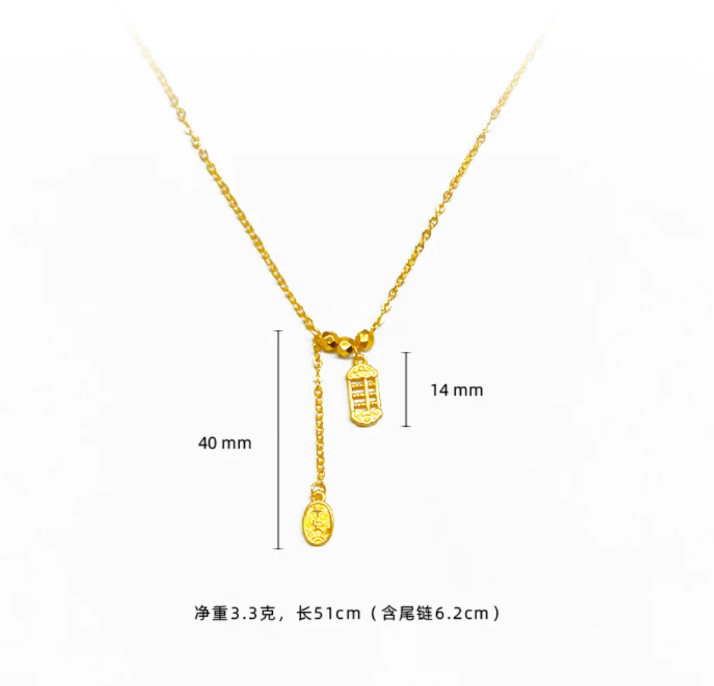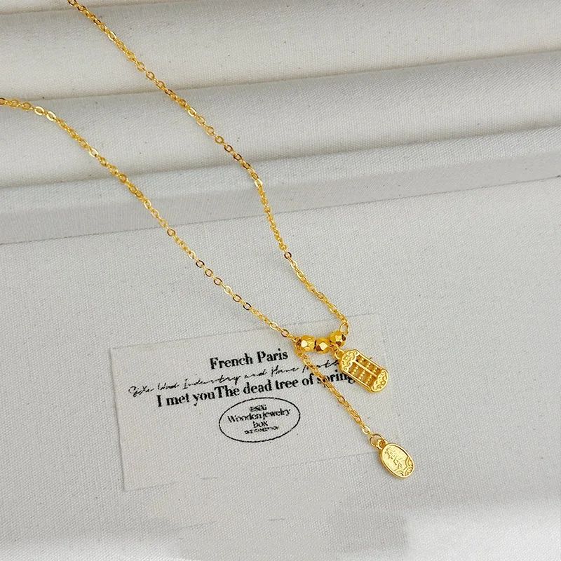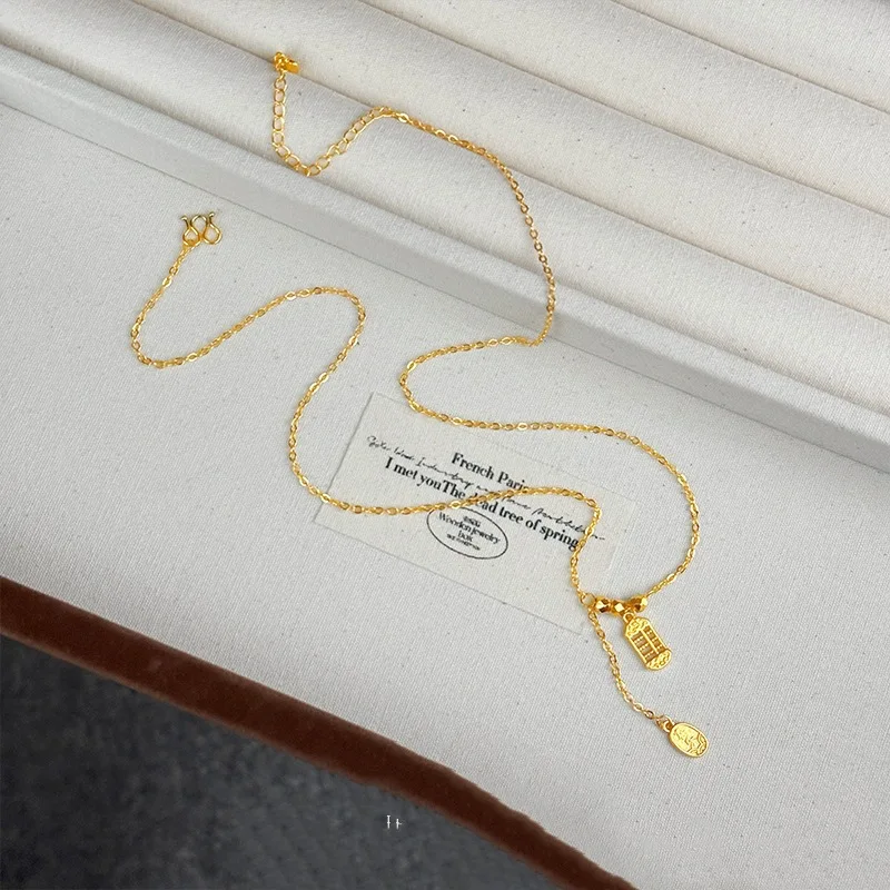Chinese Style Gold 9999 24K Real Gold Abacus Ping Anxiele Chain Temperament Jewelry Necklace Collarbone Chain Jewelry