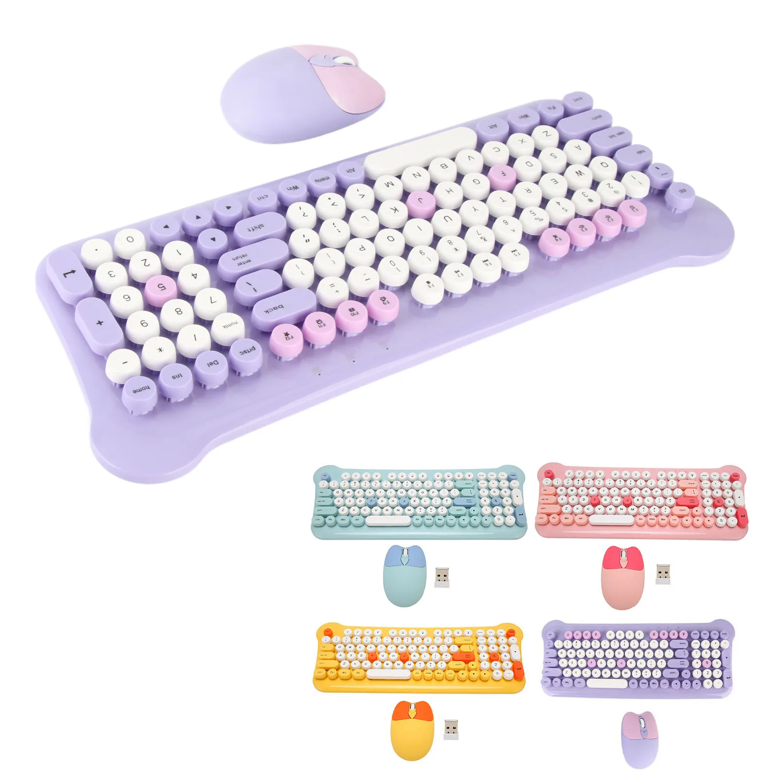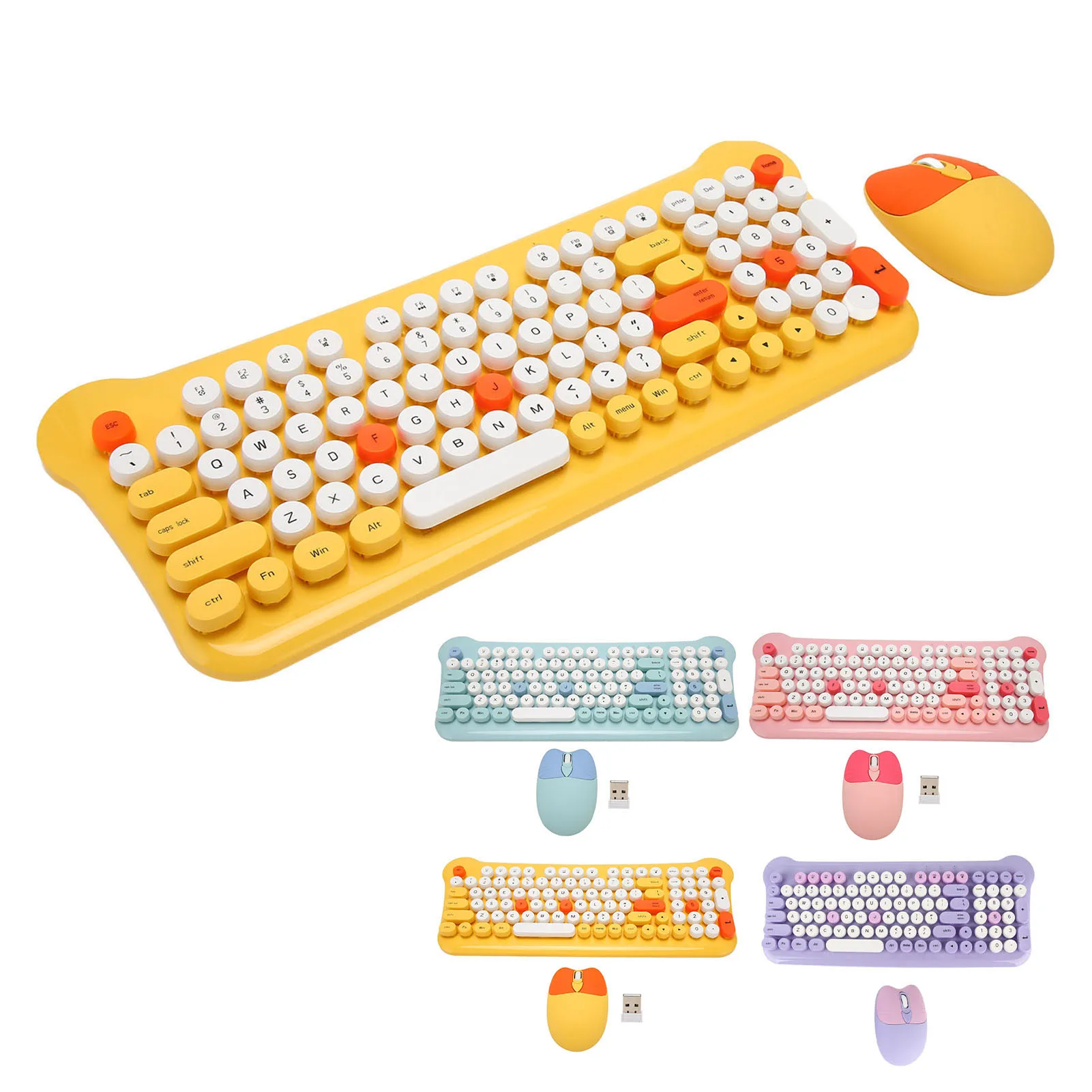 Colorful Keyboard and Mouse Plug and Play Wireless Keyboard and Mouse Set Responsive with Round Keycaps for Laptops PC Desktops