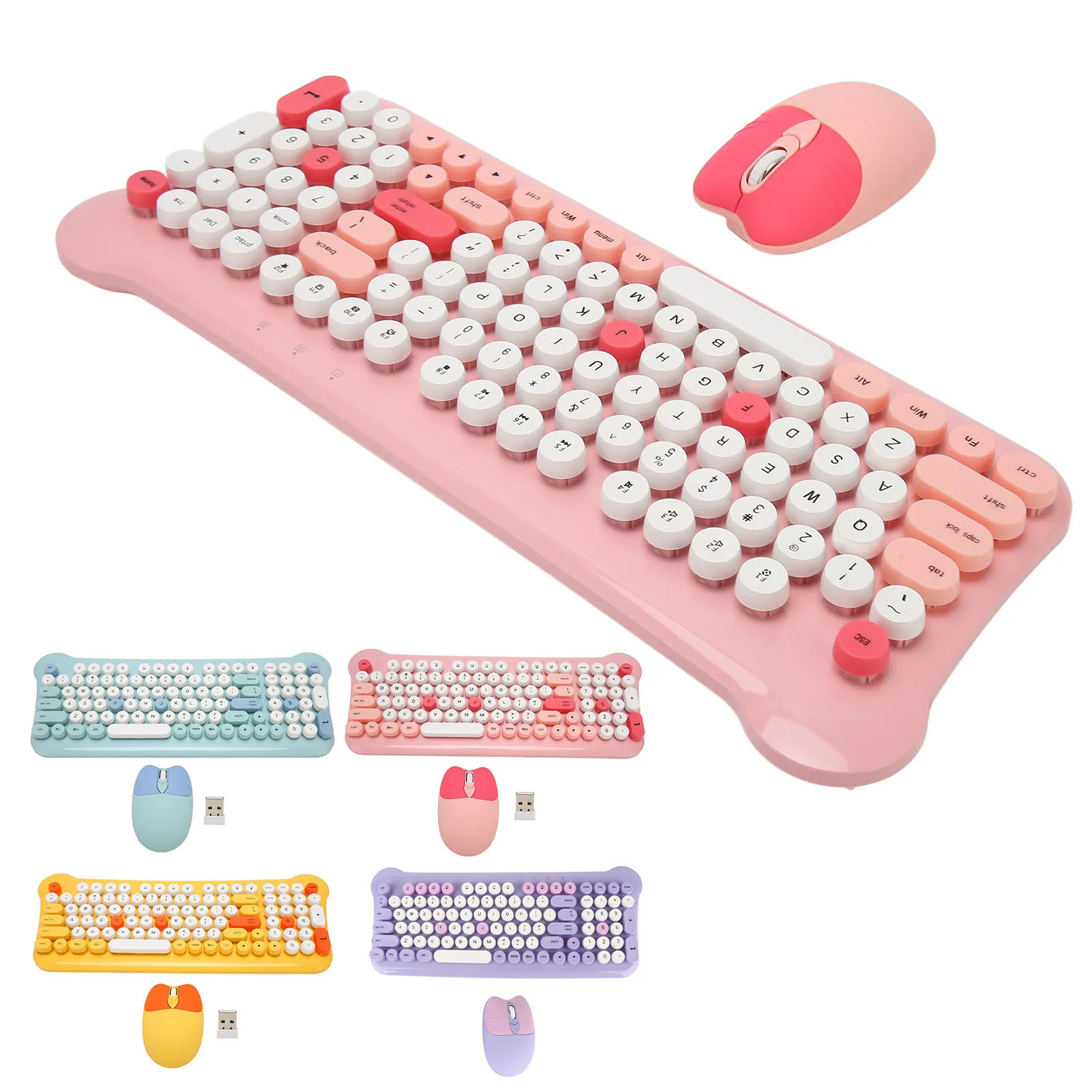 1. Mixed Color Cute Keyboard: 98 keys color keyboard with round keycap, retro design, with cute wireless mouse. Beautiful keyboard and mouse set, enjoy the visual beauty, bring more fun to your work and life.