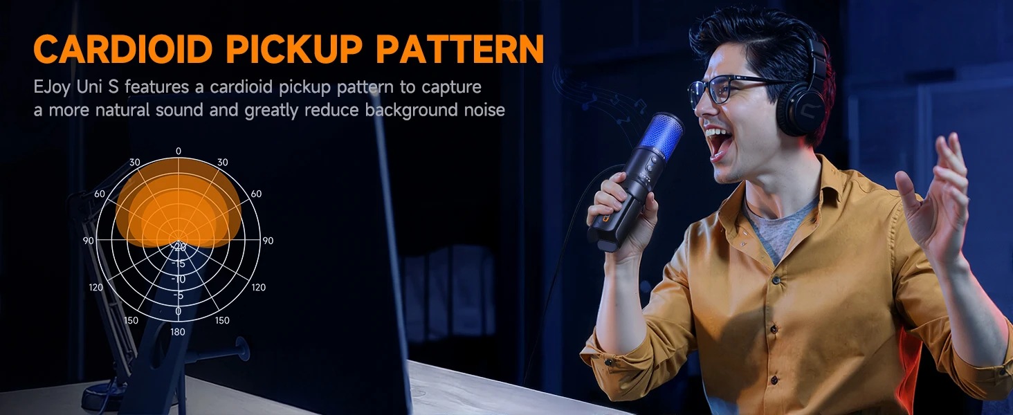 The EJoy Uni S comes with one-click mute and CalMix® AI Denoise functions, along with a cardioid pickup pattern. This pickup pattern enables the device to capture more natural sound while greatly reducing background noise, enhancing the overall audio quality for users.
