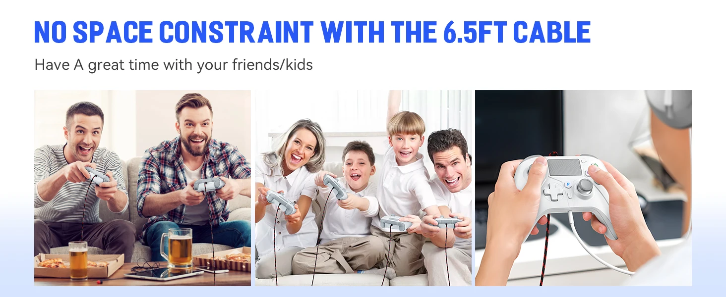 Gain a competitive edge with the Turbo Function,allowing you to easily activate rapid-fire mode for quick and efficient gameplay.NO SPACE CONSTRAINT WITH THE 6.5FT CABLE