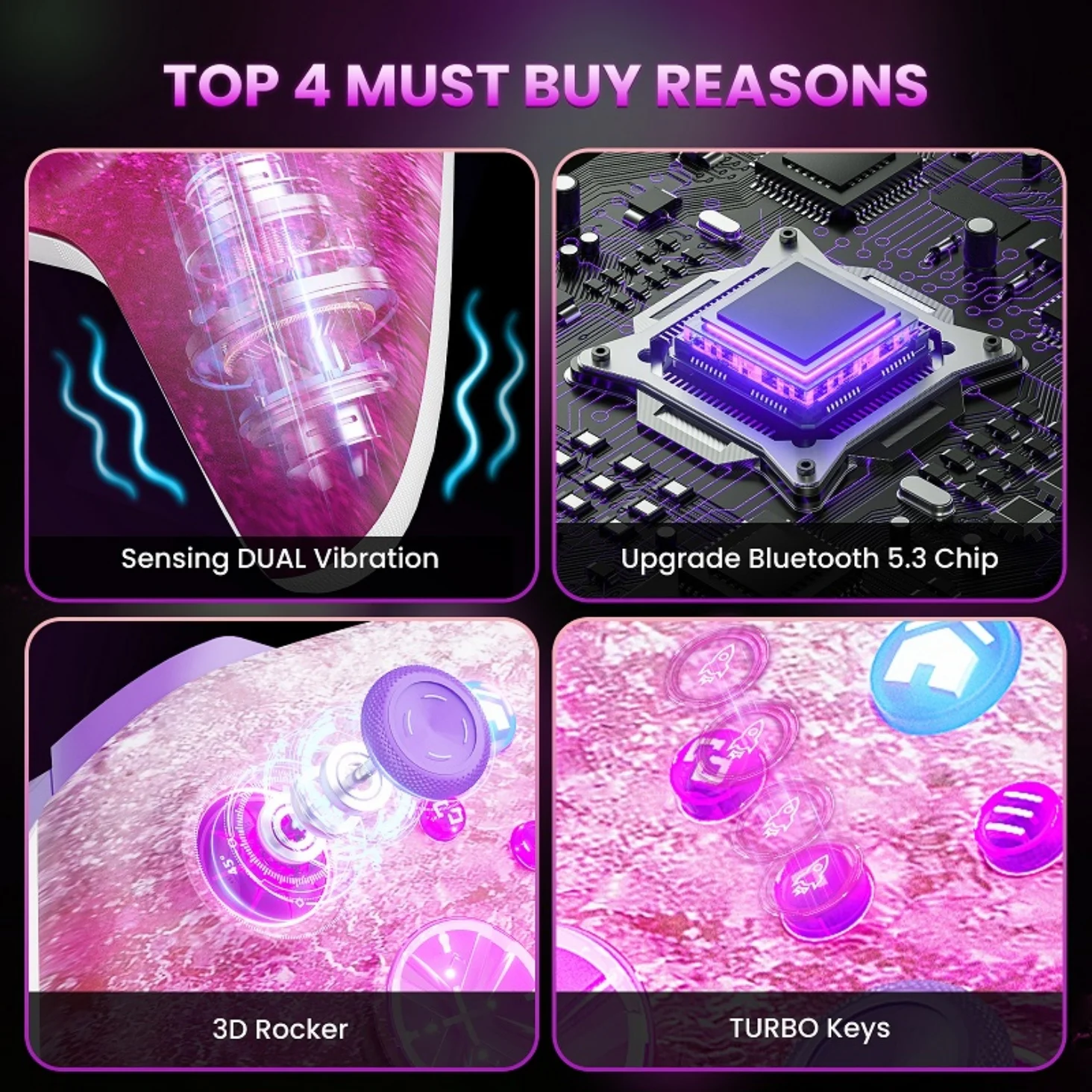 Controller for XBox One/Series S/X/PC Console Wireless Dual Vibration Game Joystick W/ RGB Hall Effect 6-Axis Gyro FUNC Gamepad