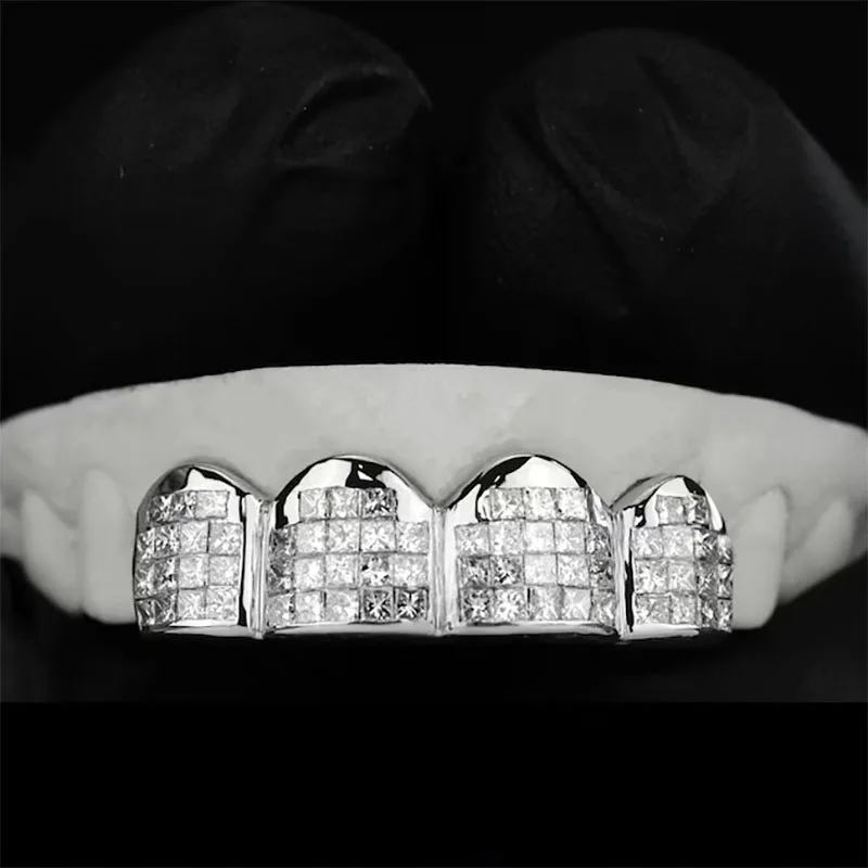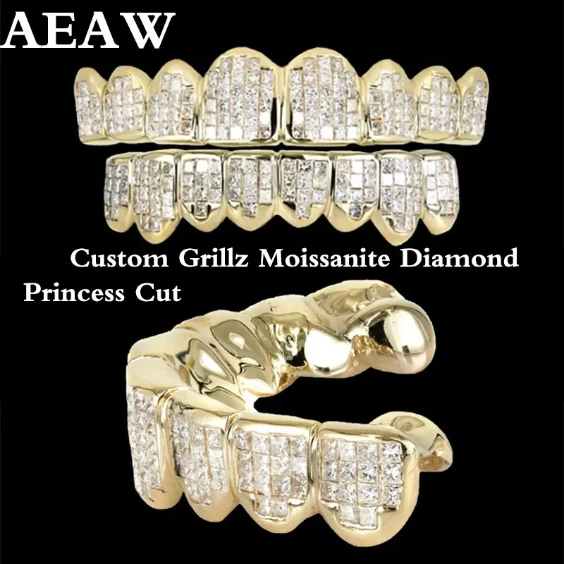 Custom Diamond Teeth Grillz Princess Cut Moissanite Diamond 8Top 8 Bottom Silver 925 Yellow & White Hip Hop Grillz Grill