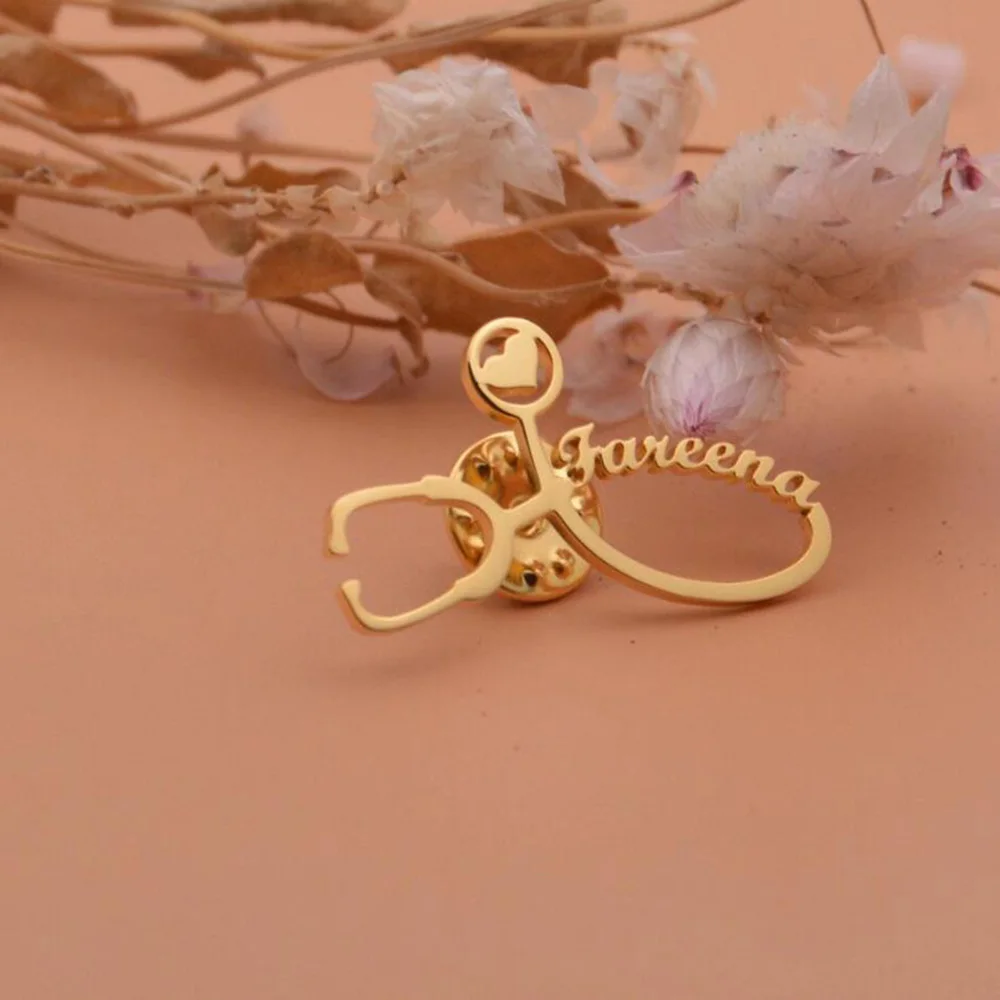 Custom Name Brooch with Stethoscope,Name Pin,Birthday Gift,Personalized Gifts For Best Friend