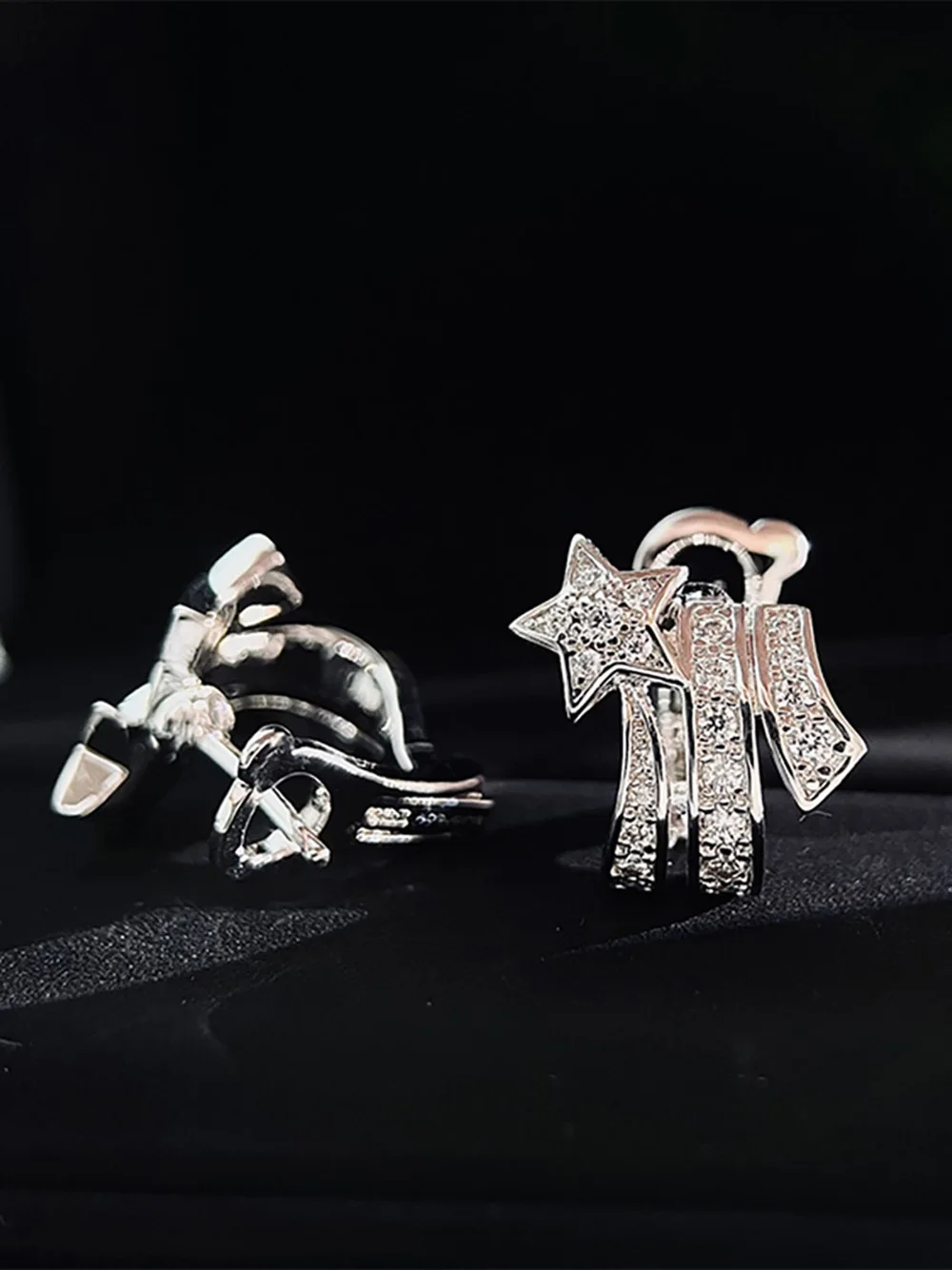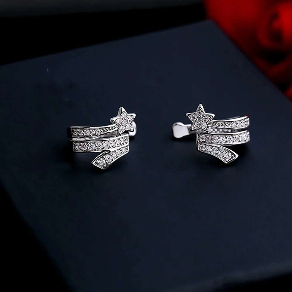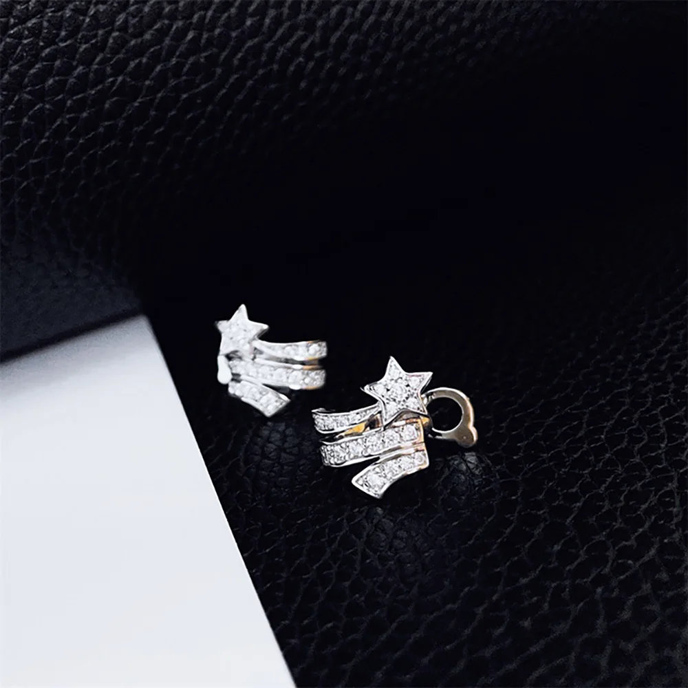 Custom Real Platinum PT950 Clip Earrings Women Engagement Anniversary Wedding Earrings Moissanite Diamond Earrings Shooting Star