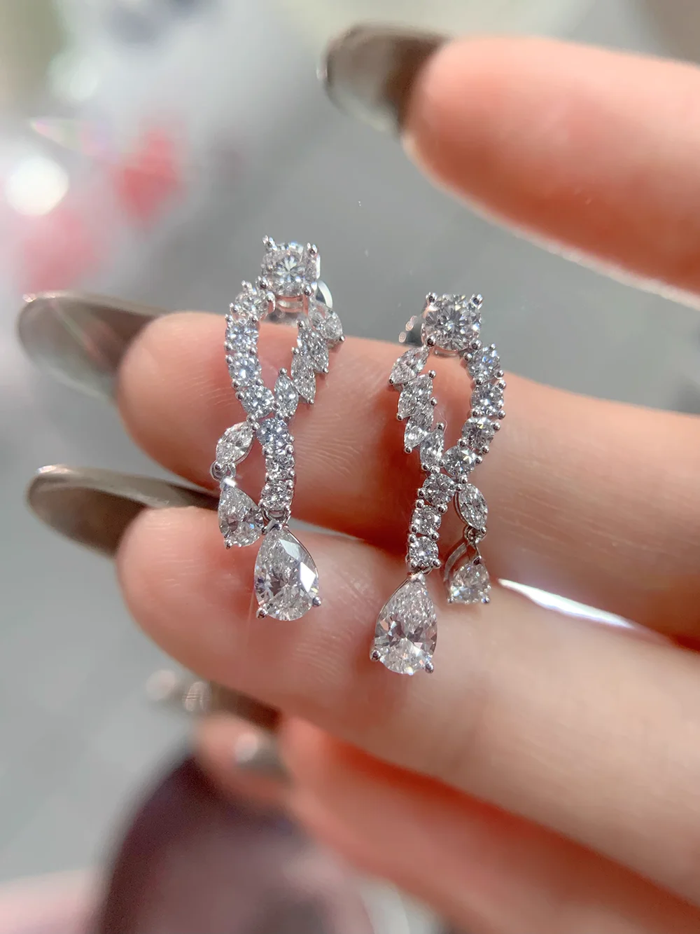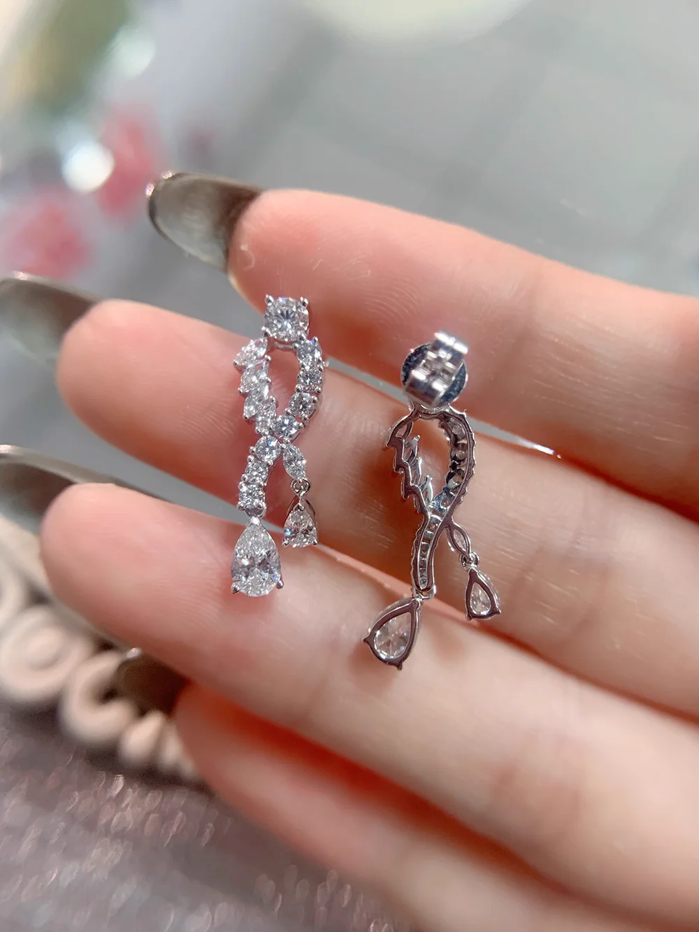 Custom Real Platinum PT950 Stud Earrings Women Anniversary Wedding Earrings Water Drop Marquise Moissanite Diamond Drop Earrings