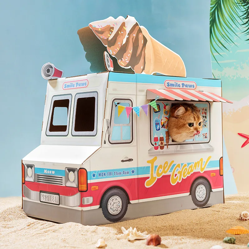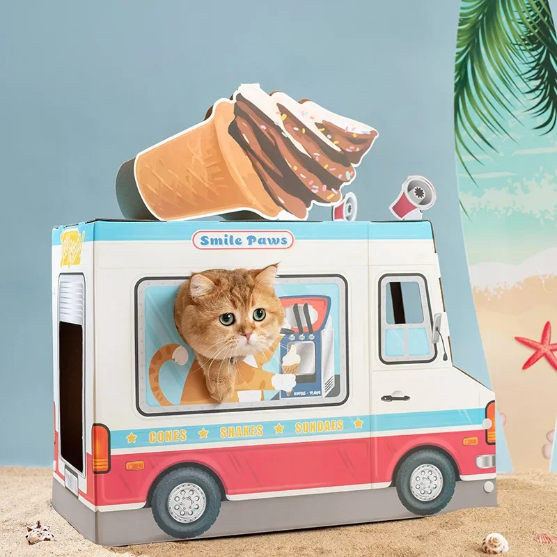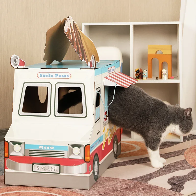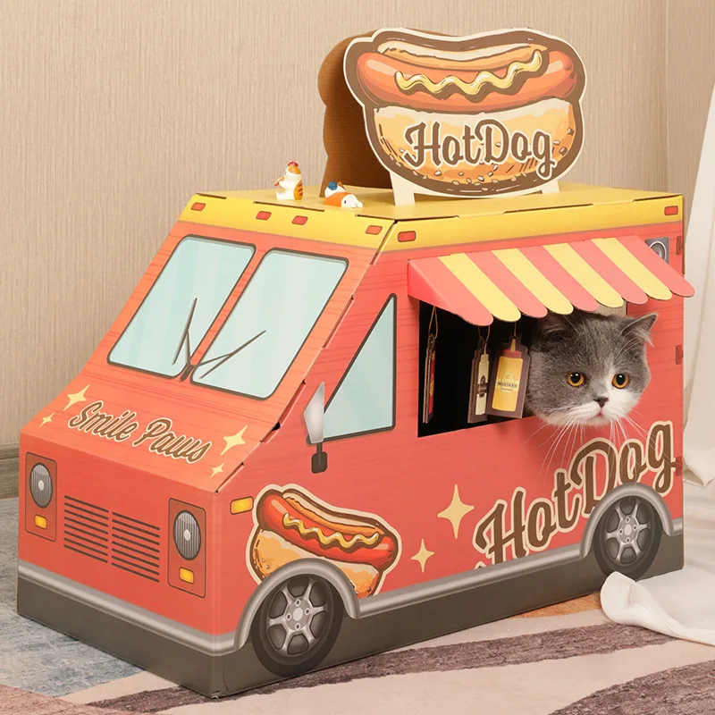Cute Cat Scratcher House Pet Dog Claw Scratching Board Bed Japanese Korean Milk Car Cardboard Box Cat Bed with Catnip Pet Supply