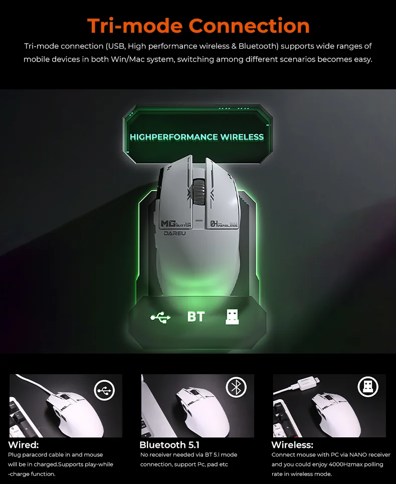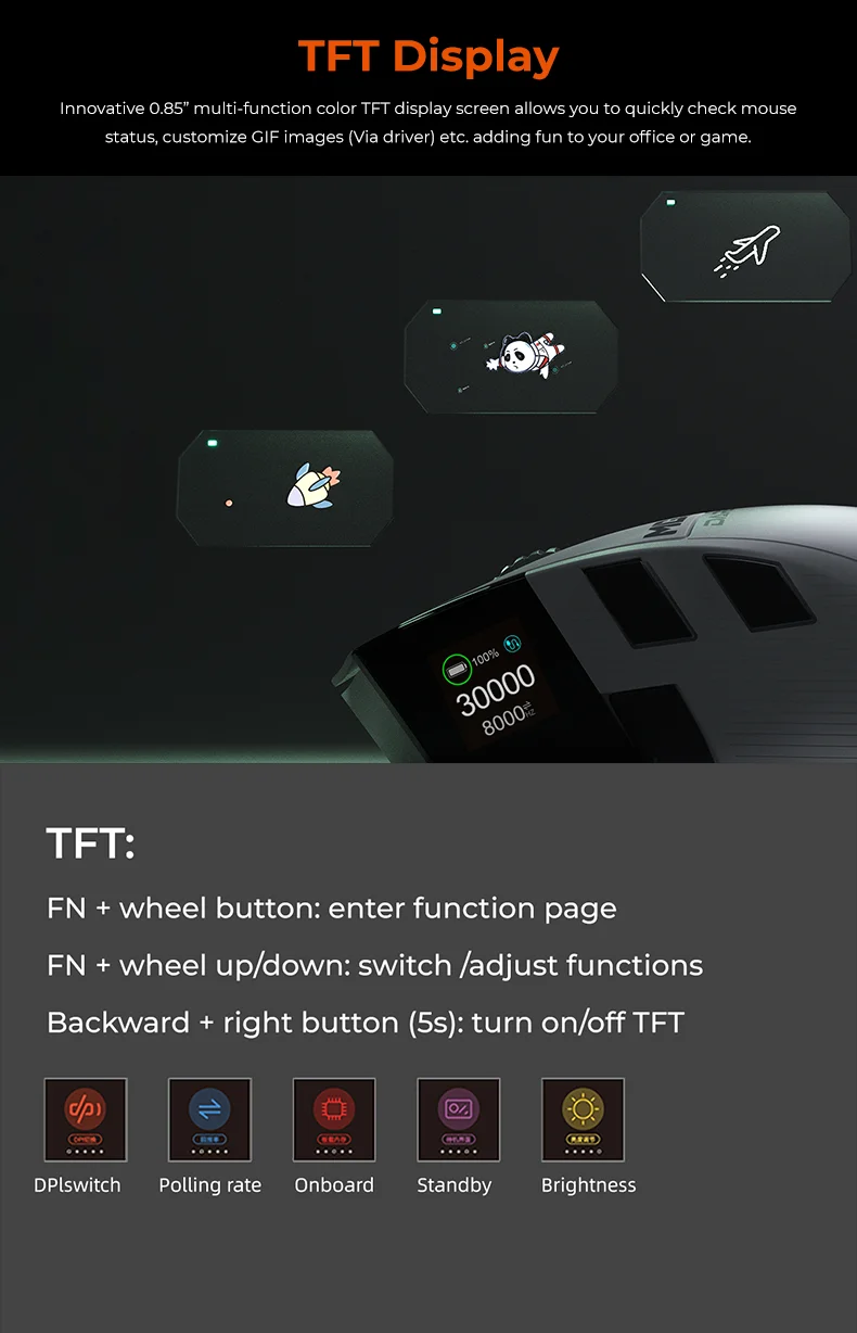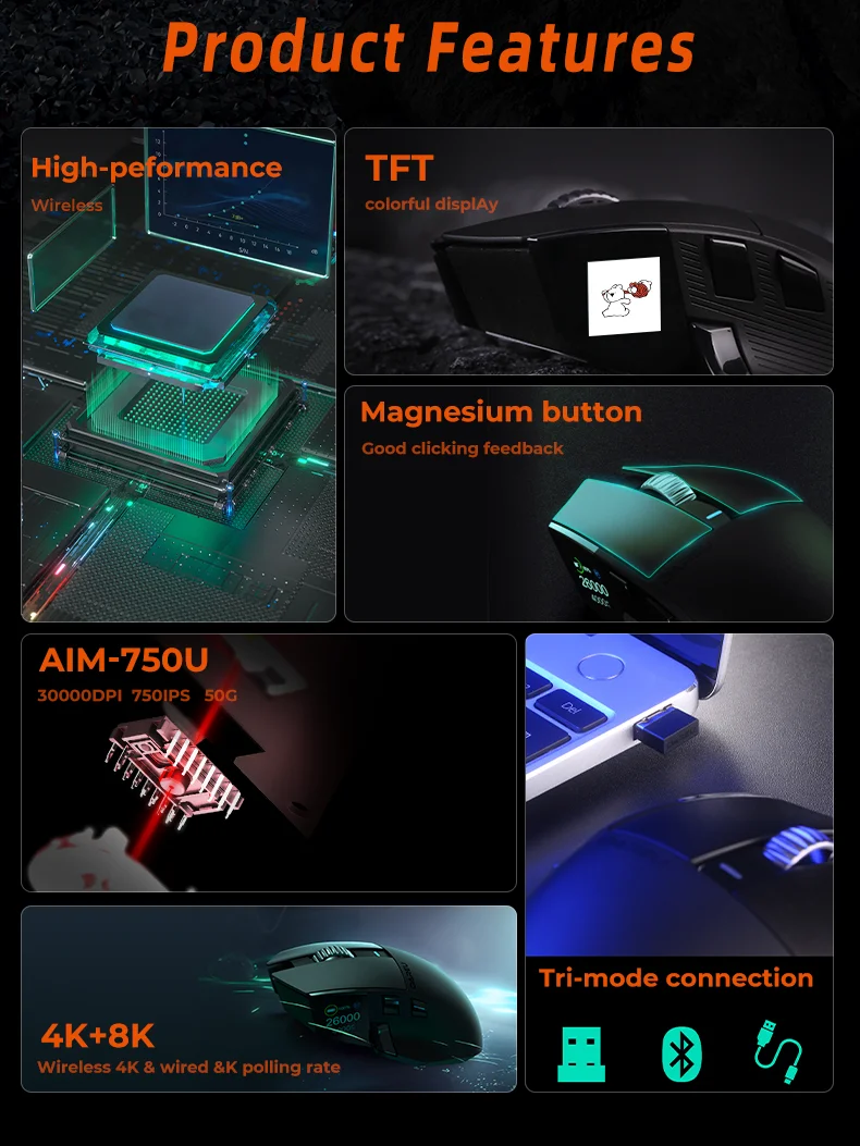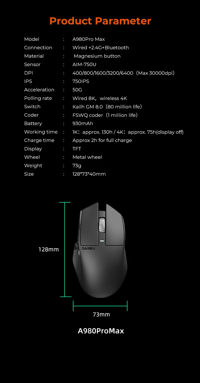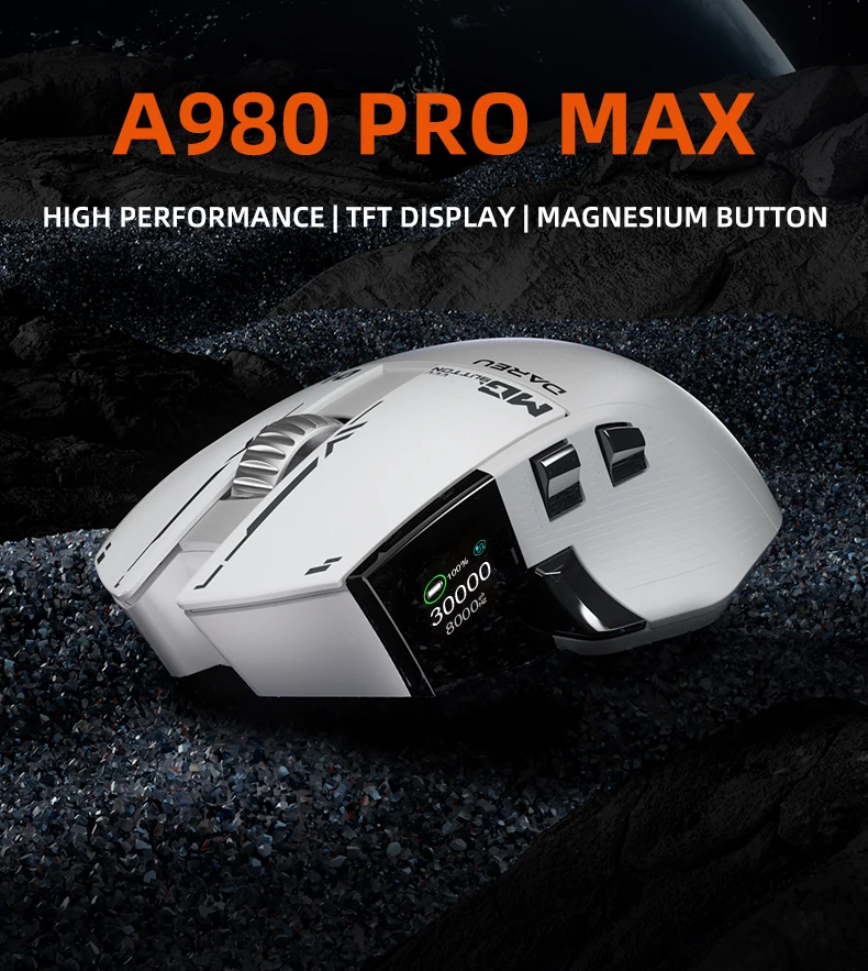 Dareu A980ProMax 8Khz Wireless Wired Mouse Tri-Mode AIM-750 30000 DPI Rechargeable TFT Display for PC Laptop Gamer