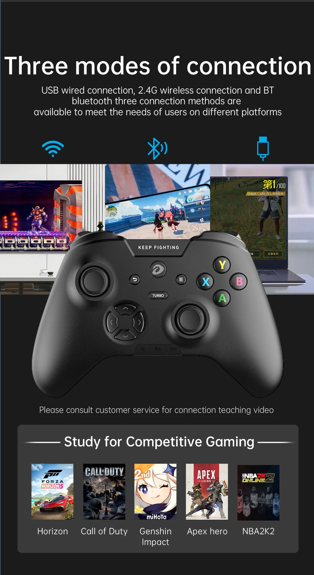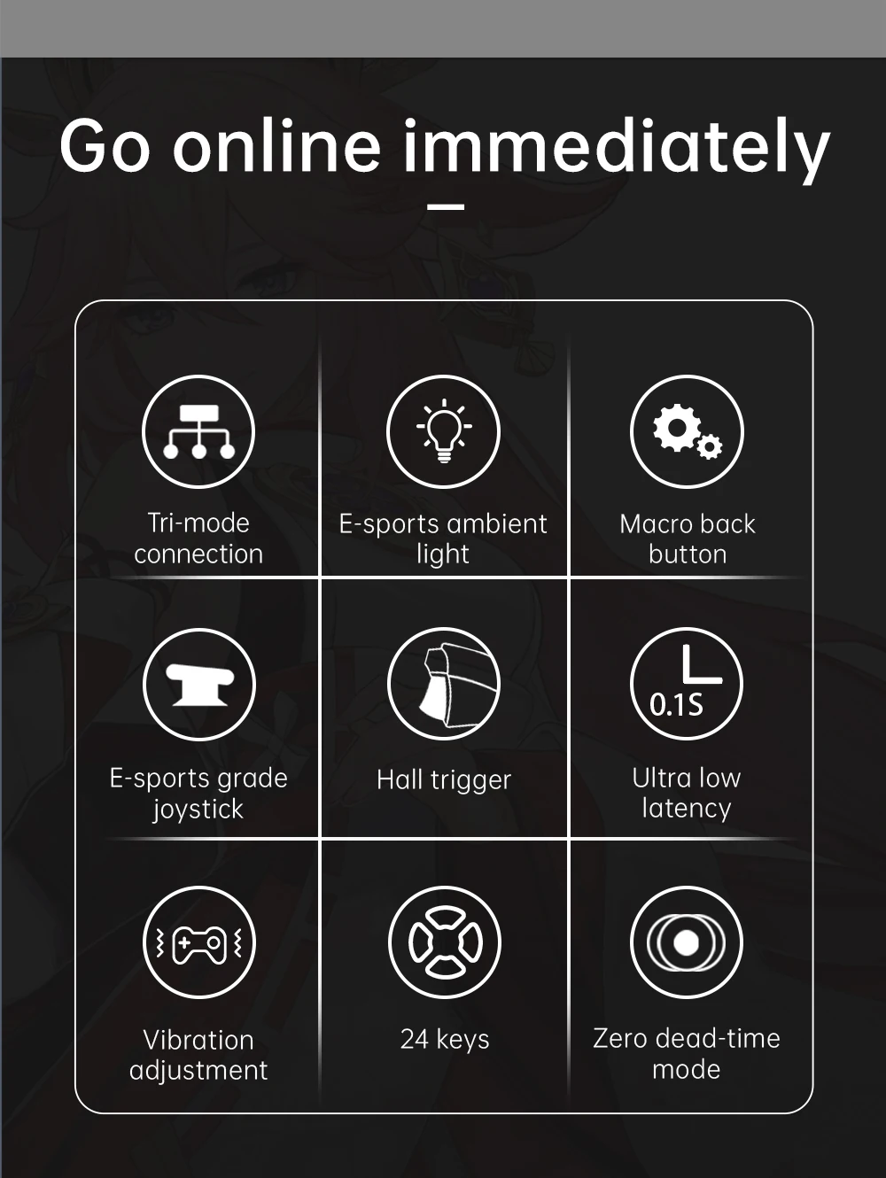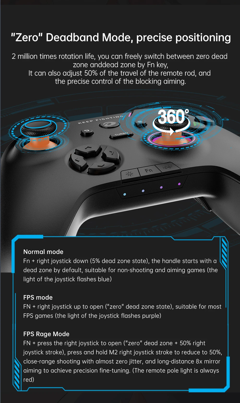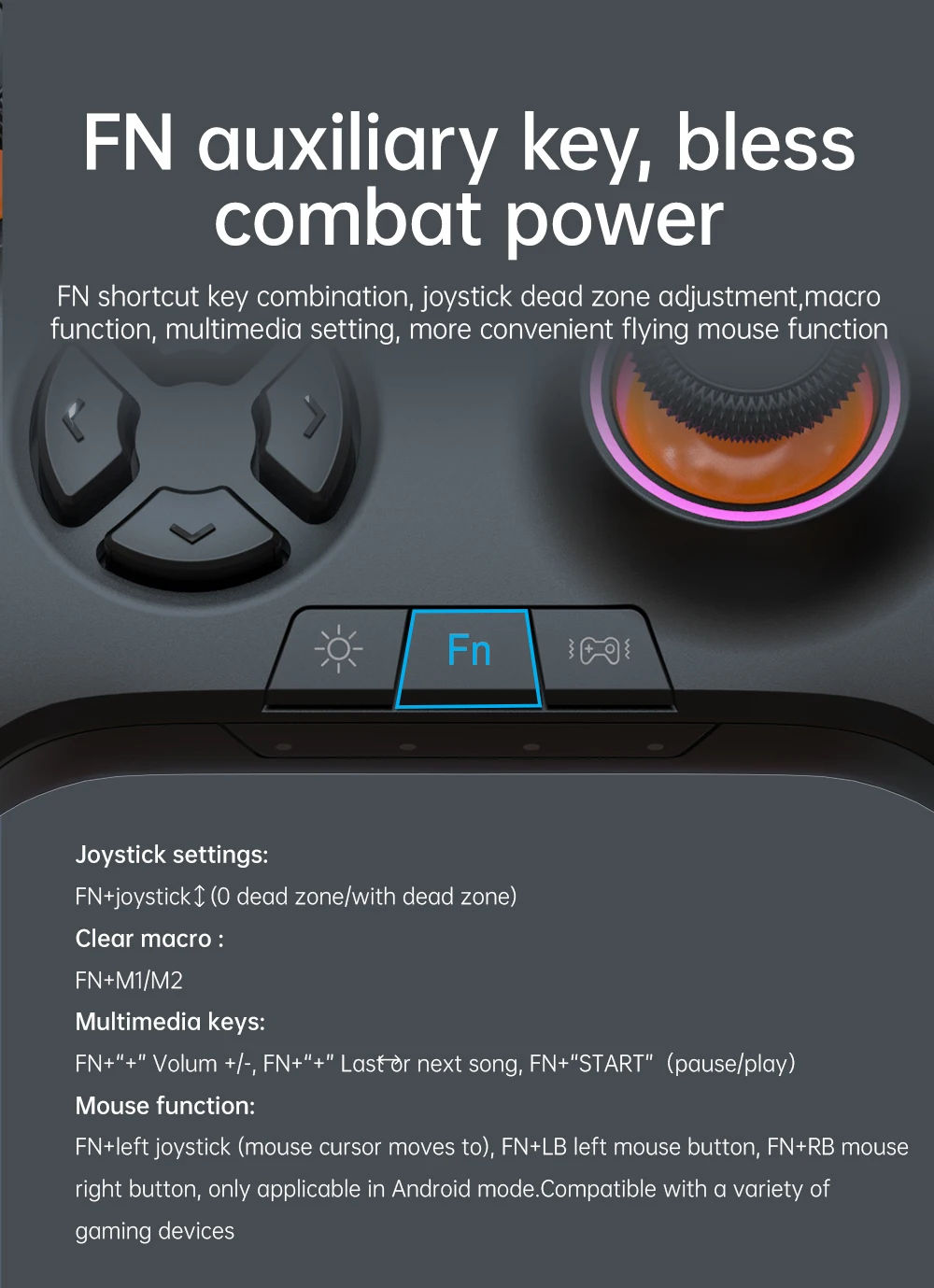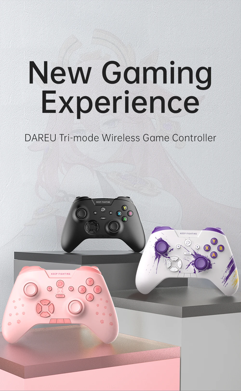 DAREU Tri-mode Gamepad RGB Bluetooth Wireless 2.4G E-sports Joystick Gaming Controller Macro Back Button for Android PC TV Games