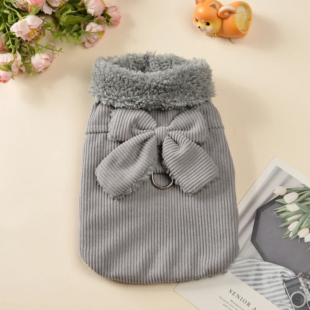 Fleece Dog Coat Winter Warm Pet Clothes For Small Medium Dogs Vest Jacket With Bow D-ring Puppy Costume Sweater Yorkie Apparel
