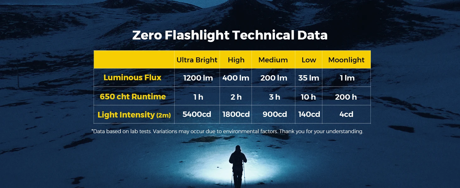 Luminous Flux: 1lm/35lm/200lm/400lm/1200lm