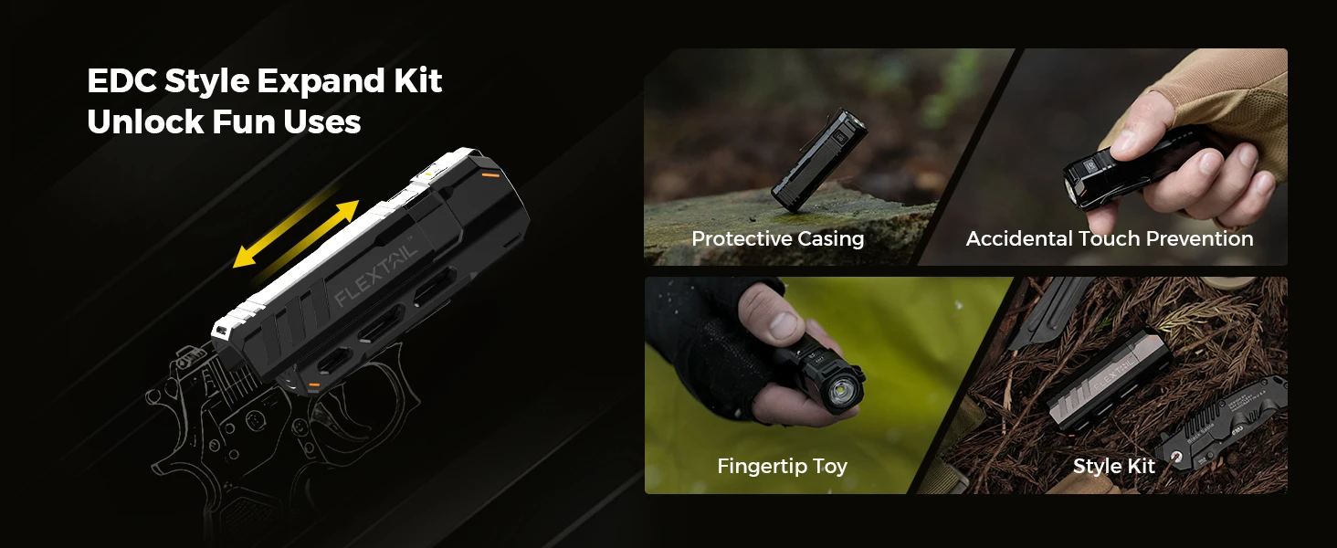 Our flashlight comes with a tactical-style protective case, enhancing user engagement through EDC (Everyday Carry) gameplay while preventing accidental activation. The striking design features a fully loaded tactical aesthetic, making it visually appealing for everyday carry. This not only attracts attention but also provides social leverage within the EDC community, allowing users to showcase their style and gear.