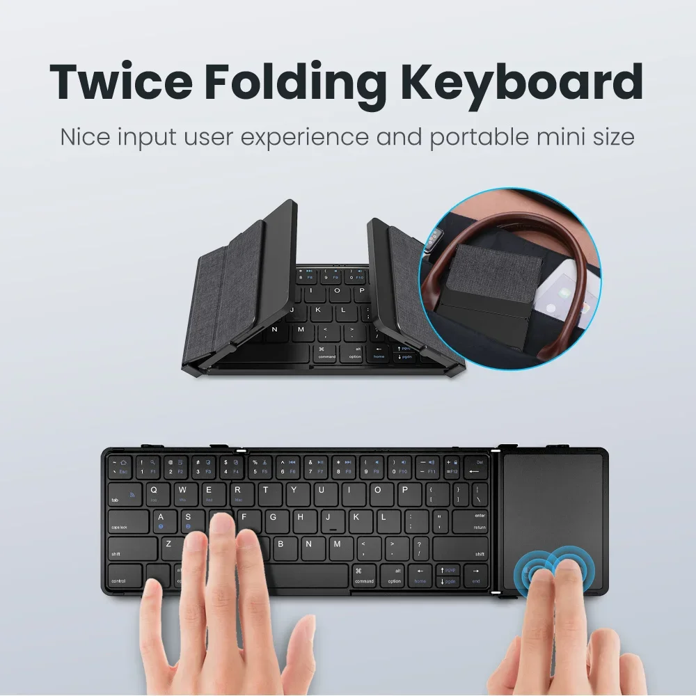 Foldable Wireless Bluetooth Keyboard Rechargeable Folding Portable Keyboards for PC Mac Smartphone Windows iOS Android