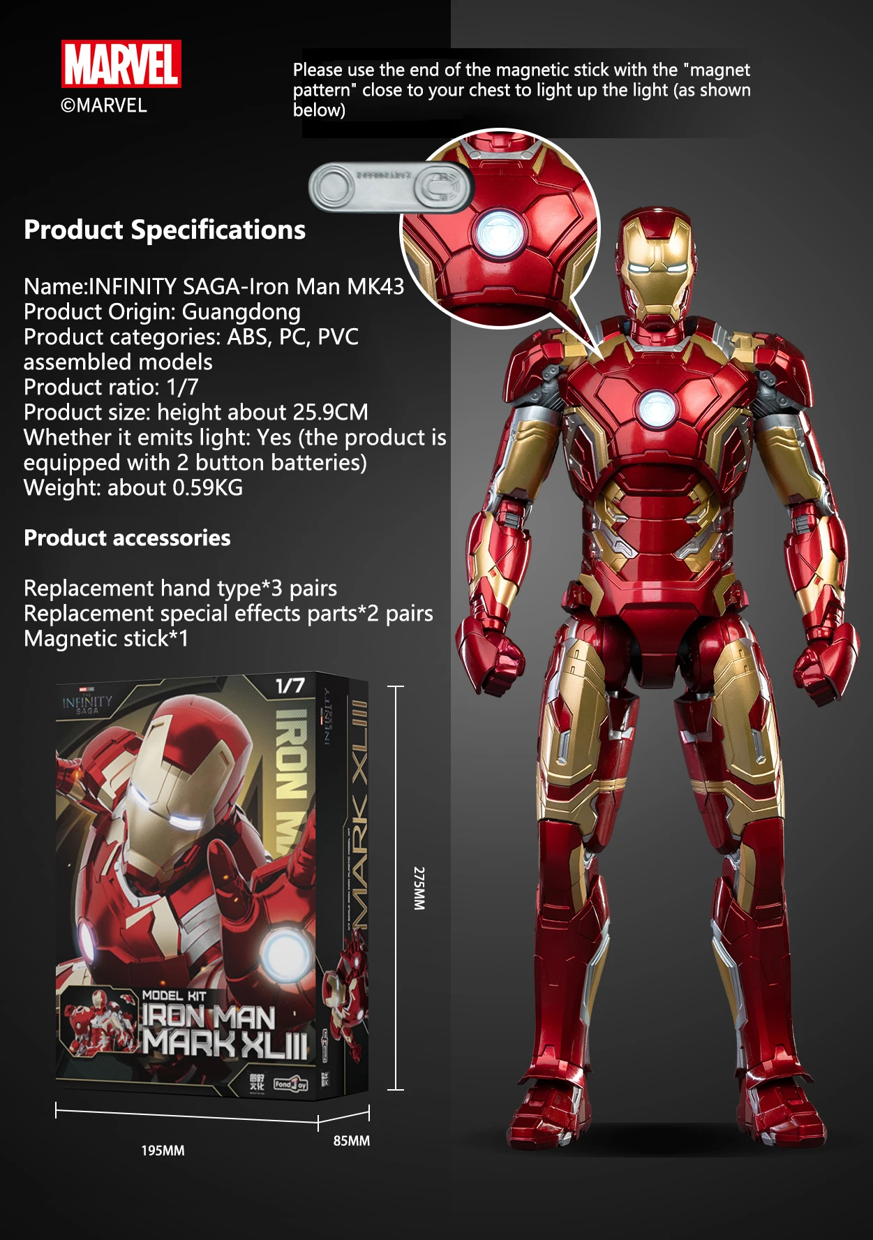 Fondjoy Marvel Iron Man MK43 Assembled Model 10in 1/7 scale Action Figures Reactors can emit light Collect Ornament Boy Toy Gift