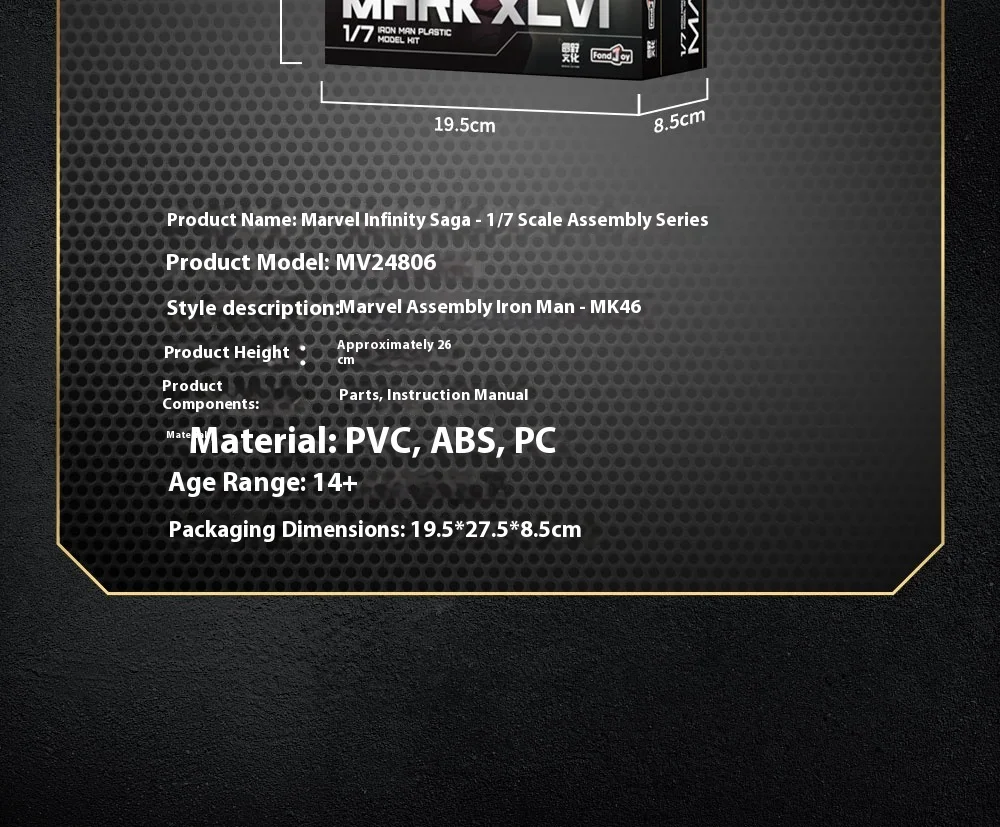 Fondjoy Official Marvel Iron Man Mk46 1/7 Assembly Action Figure Toy Model Decoration For Boys Collectible Toys & Hobbies