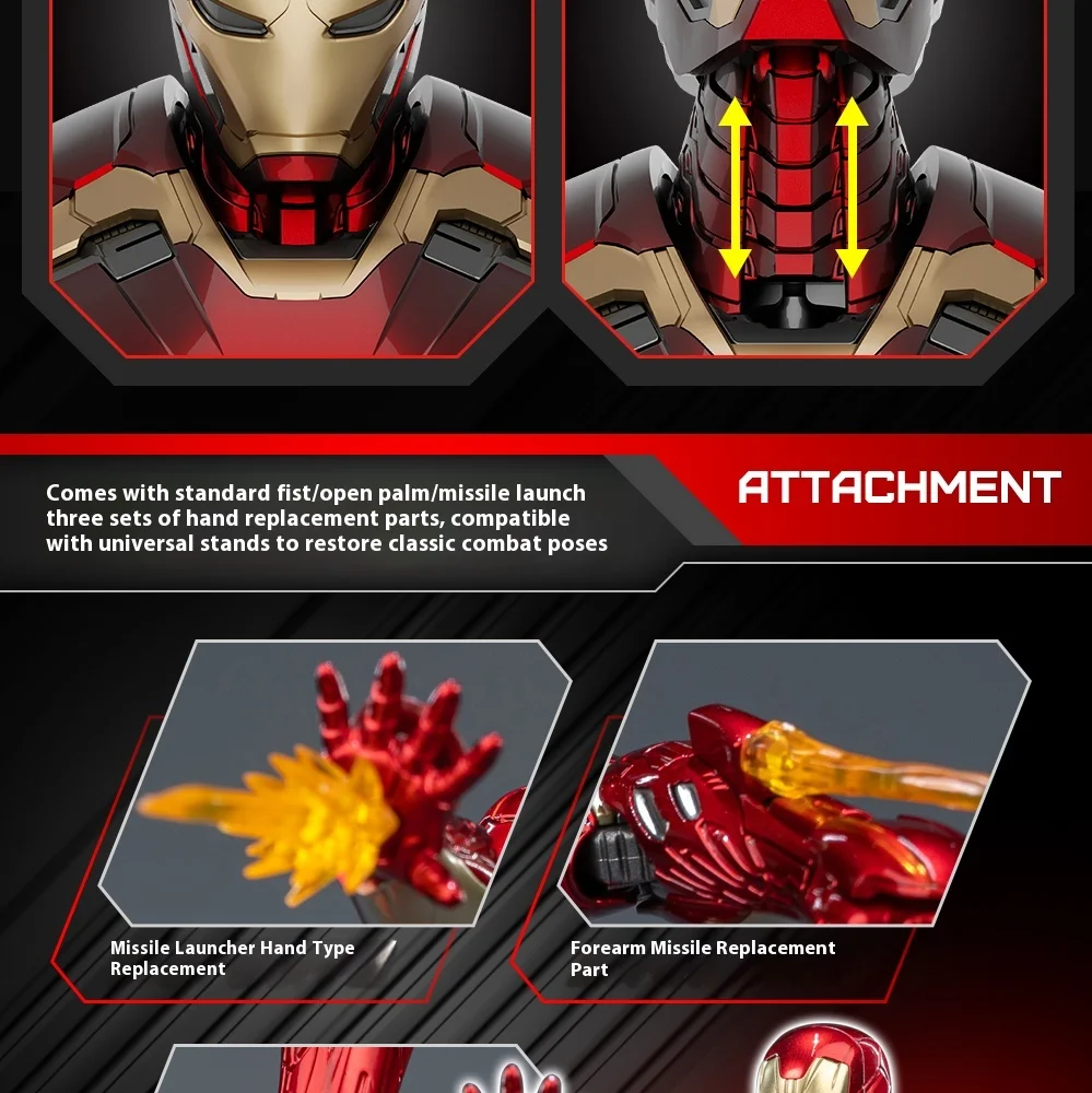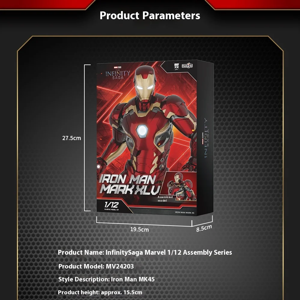 Fondjoy Real Iron Man Mk45 Action Doll Marvel Assembled 1/12 Model Toy Birthday Gift For Boys Collecting Toys And Hobbies