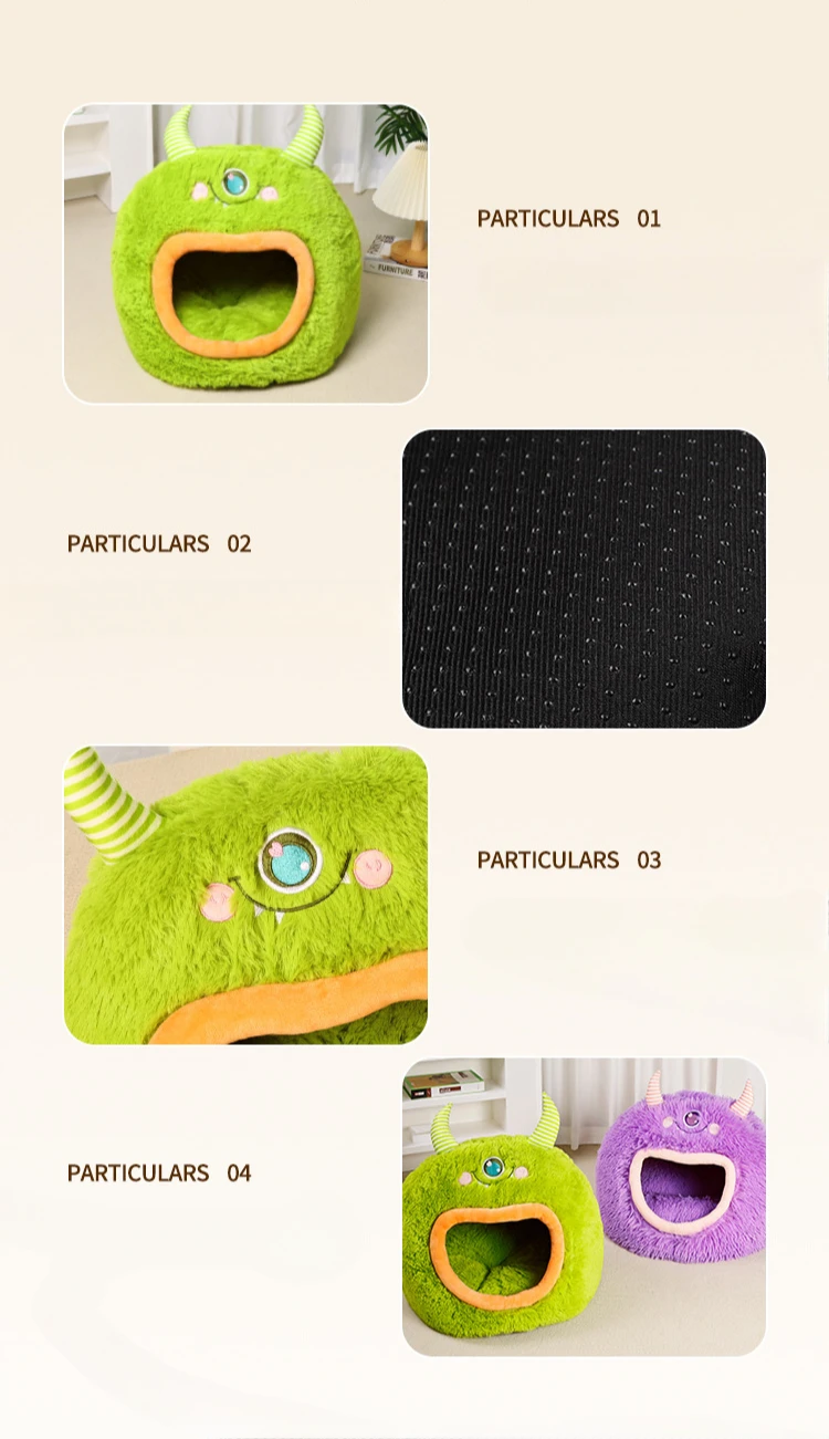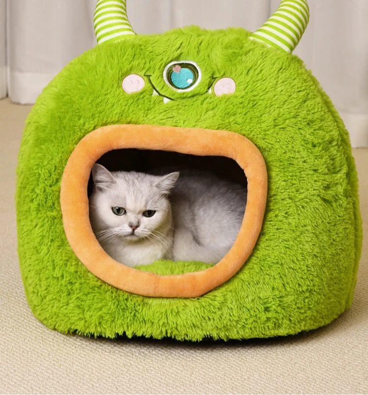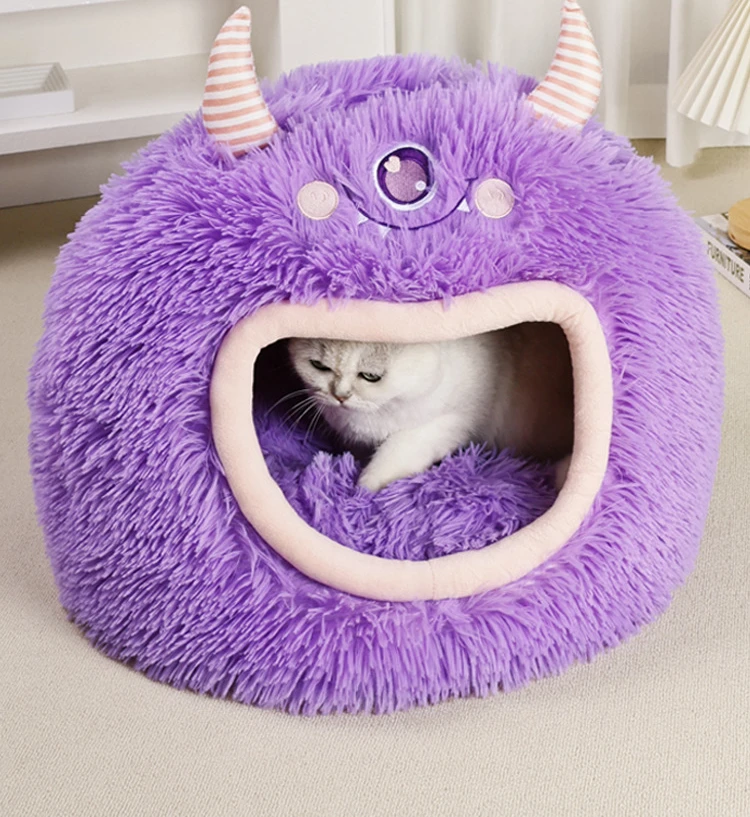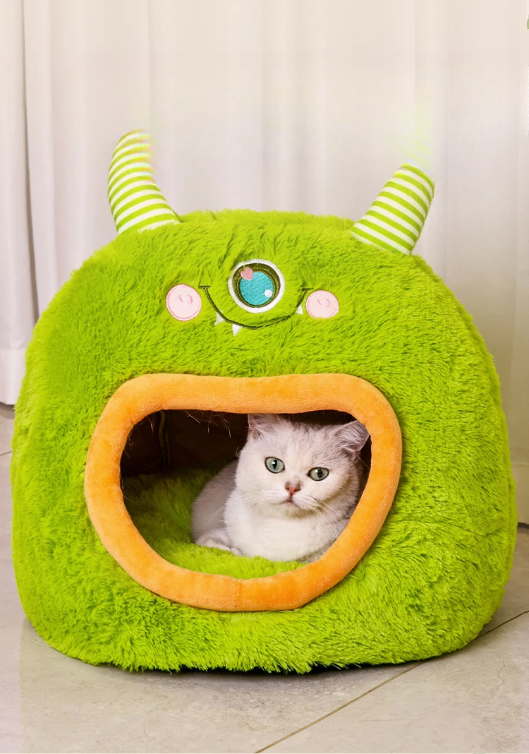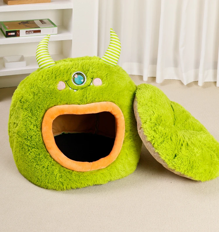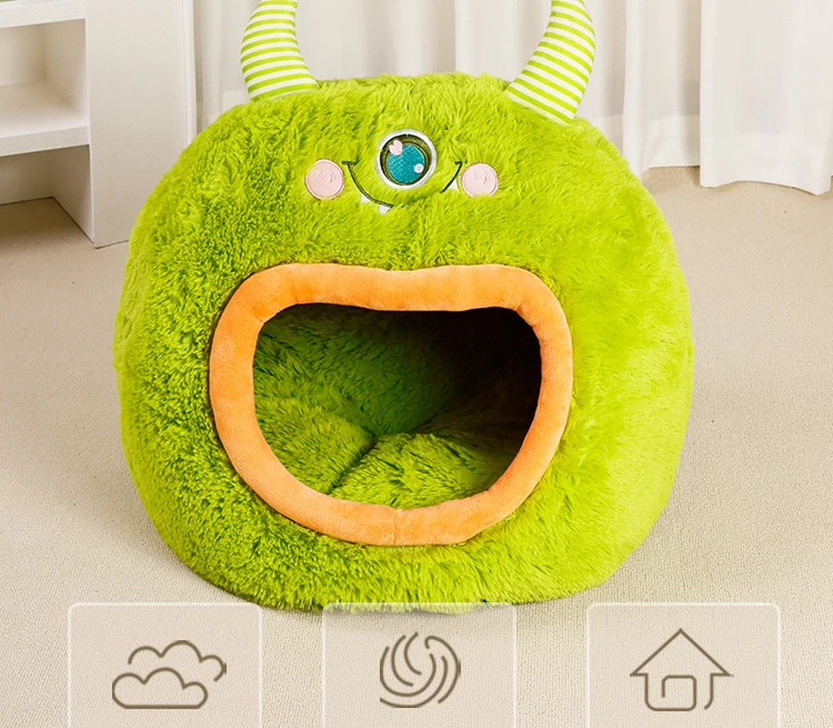 Fully Enclosed Safe and Cozy Cartoon Monster Pet Bed for Dogs and Cats Four Seasons Universal Soft and Warm for Winter Cat House