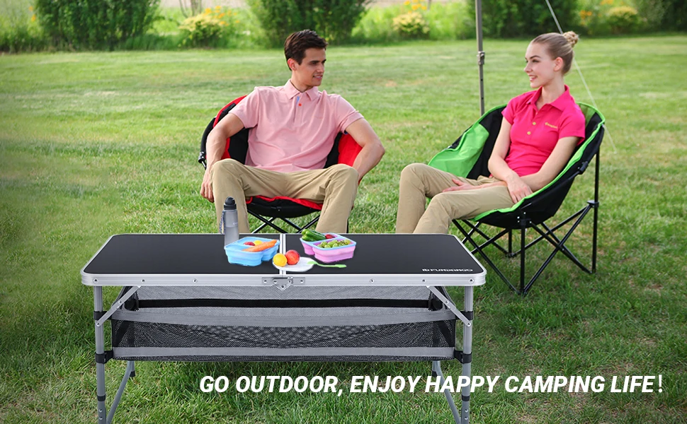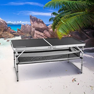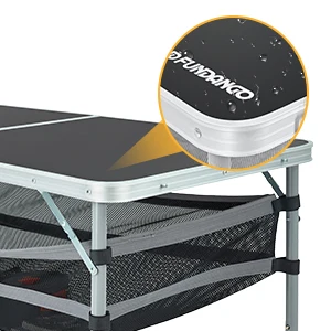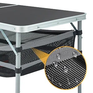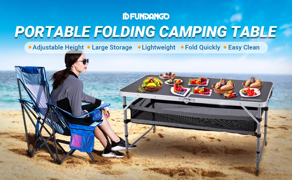 FUNDANGO Camping table, outdoor indoor beach barbecue, picnic, travel, height adjustable, with layered mesh storage
